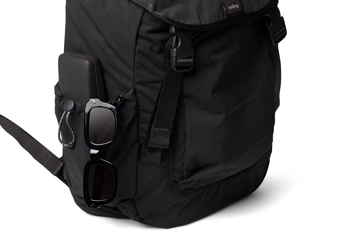 - Zwei externe Pop-Taschen – eine mit Kordelzugverschluss
