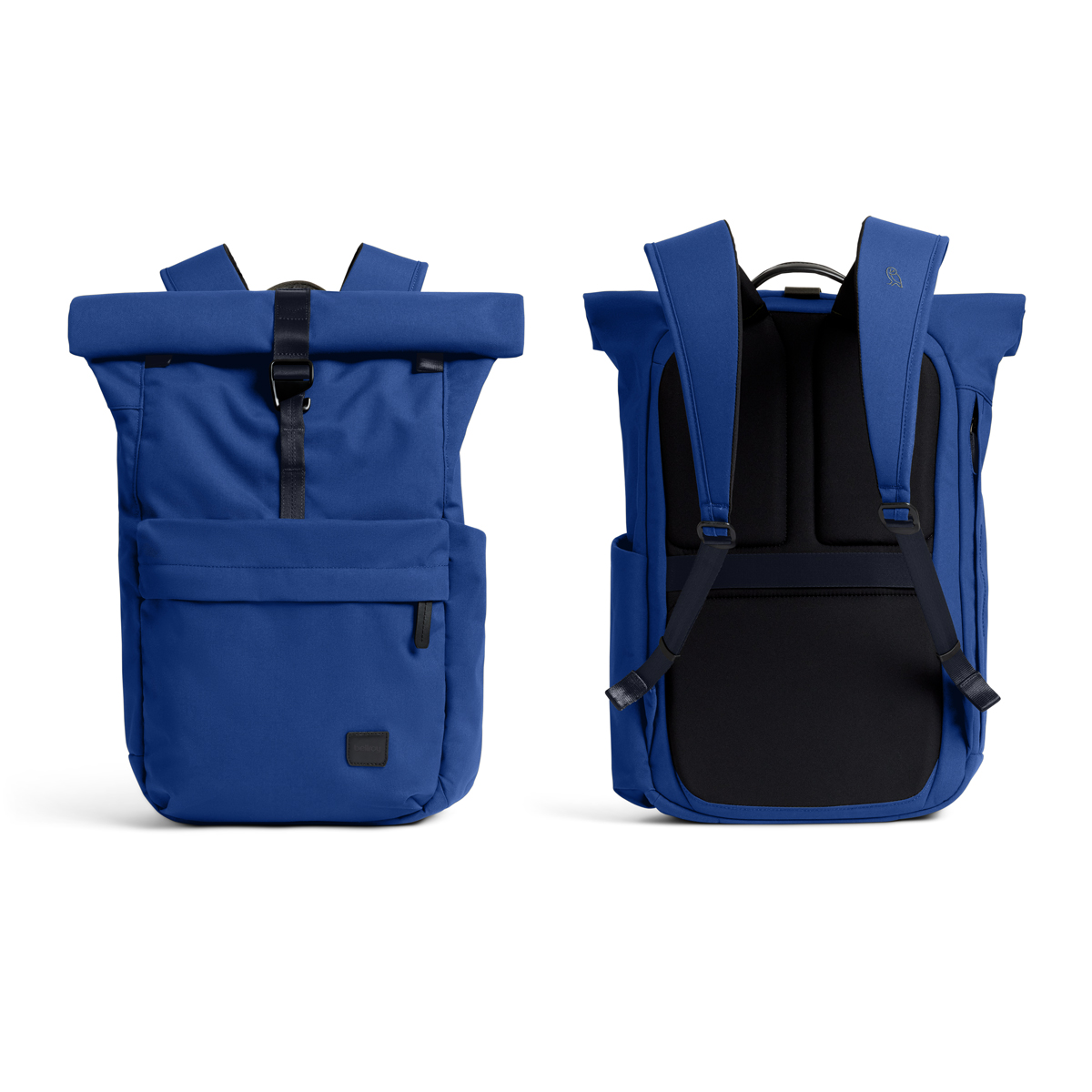 The familiar shape of a rolltop commuter backpack, with modern updates