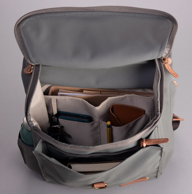 Hunter Backpack is a great everyday backpack with a classic look. It fits a 16" inch Mac Book Pro and all the things you need during the day.