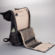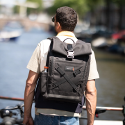 The Lenny Bike Pack is a great everyday backpack. It has a timeless, sporty look and takes you from the office, to the gym and for a quick weekend away. It has a padded 15" laptop compartment. The fabric is made from recycled PET bottles with a layer of wax to make it even more waterproof. To keep you safe at night, we added highly reflective strips on the back and on the shoulder straps.