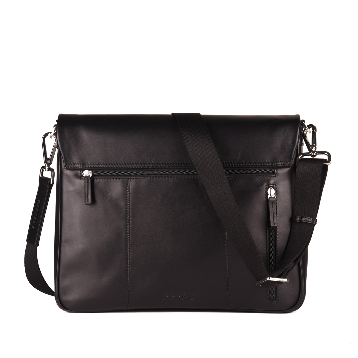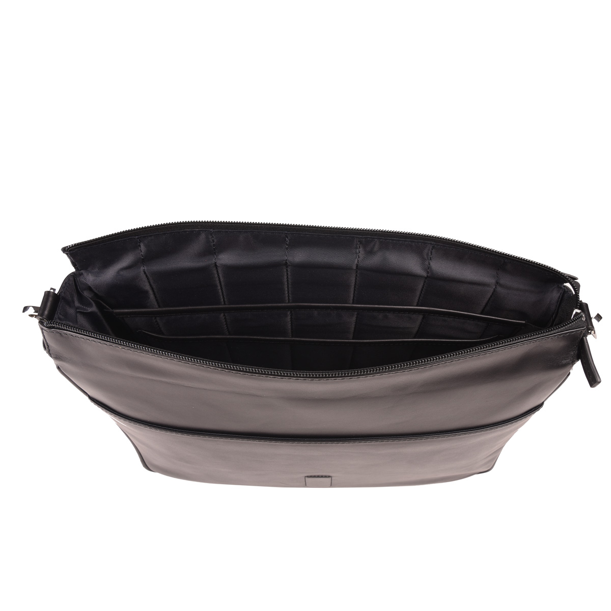 Mit dieser modernen Umhängetasche aus exquisitem Rindsnappa und natürlicher Glanzoptik setzen Sie ein stilvolles Statement im Berufsleben. Die durchdachte Ausstattung bietet Platz für Laptop und Tablet, zahlreiche Dokumente sowie Arbeitsutensilien. Auf der Rückseite sorgt der praktische Trolley Loop für den sicheren Halt auf jedem Rollgepäck. Dank des individuell anpassbaren Umhängegurts und angenehmen Tragekomforts ist die hochwertige schwarze Tasche der perfekte Begleiter im Business-Alltag.