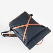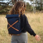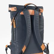 Osaka verbindet wasserabweisendes Baumwollgewebe mit authentischem Leder. Der leichte Roll-top-Rucksack mit gepolsterten Schultergurten und seidenmattem Coating bietet Platz für Unterlagen in A4-Format und ein Notebook bis 15 Zoll.