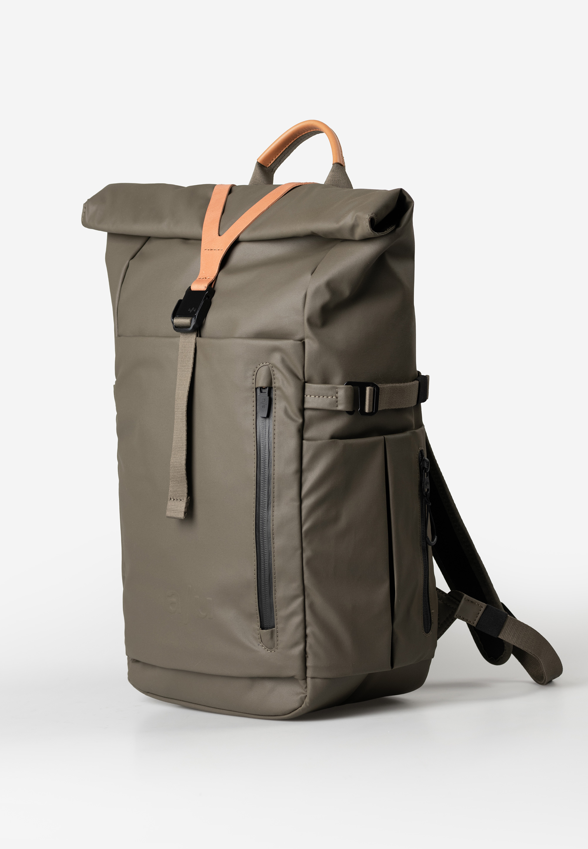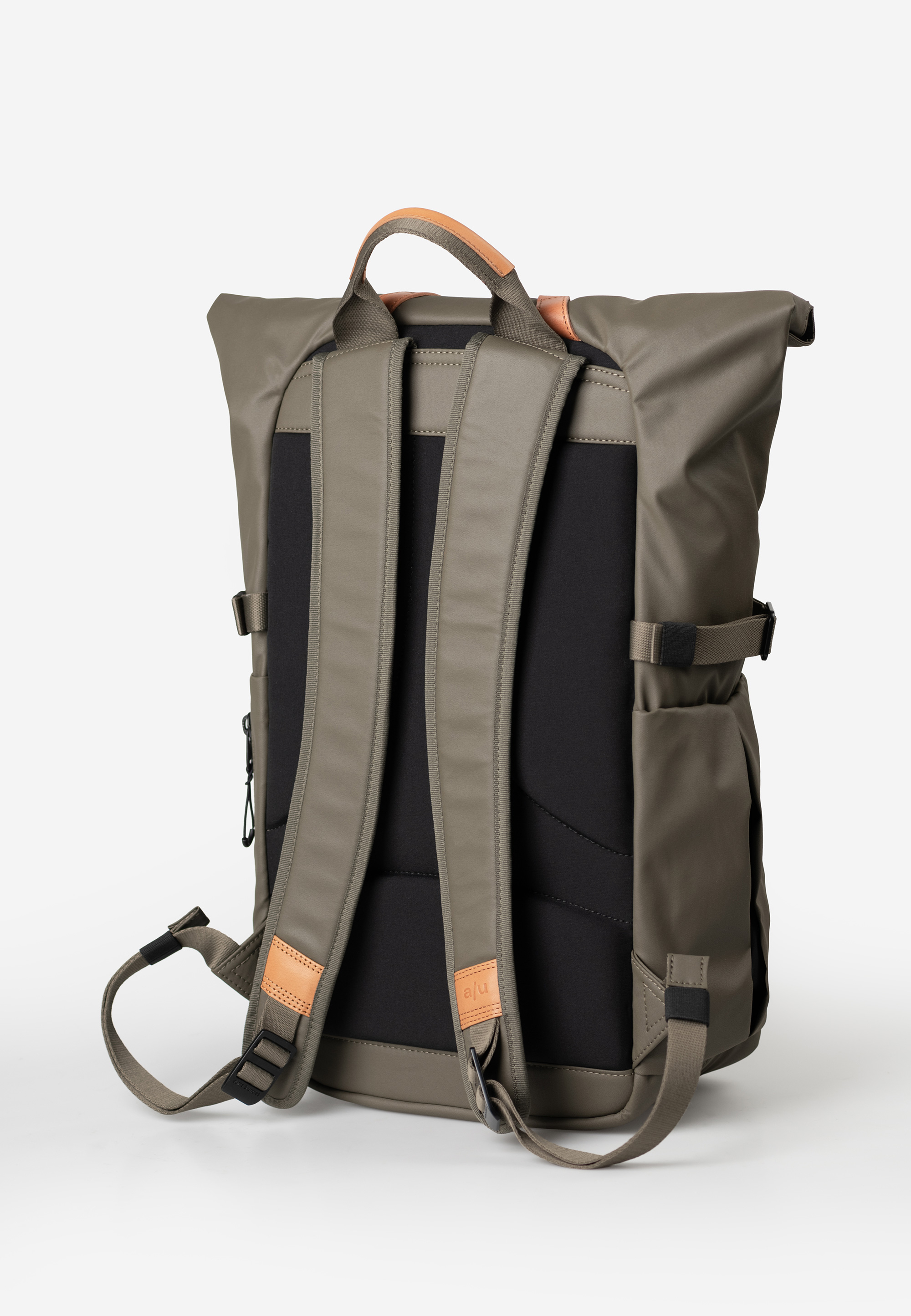 Tokachi RE scores with its lightweight, sophisticated design that can take on any adventure. The weatherproof backpack is made from recycled nylon. Applications and a base made from carefully tanned premium leather create a distinctive look. The flexible main compartment with roll closure, a padded notebook compartment, various inner and outer pockets and practical details such as pen loops and a key strap ensure optimal organization. Padded shoulder straps and an ergonomic back guarantee the highest level of carrying comfort.