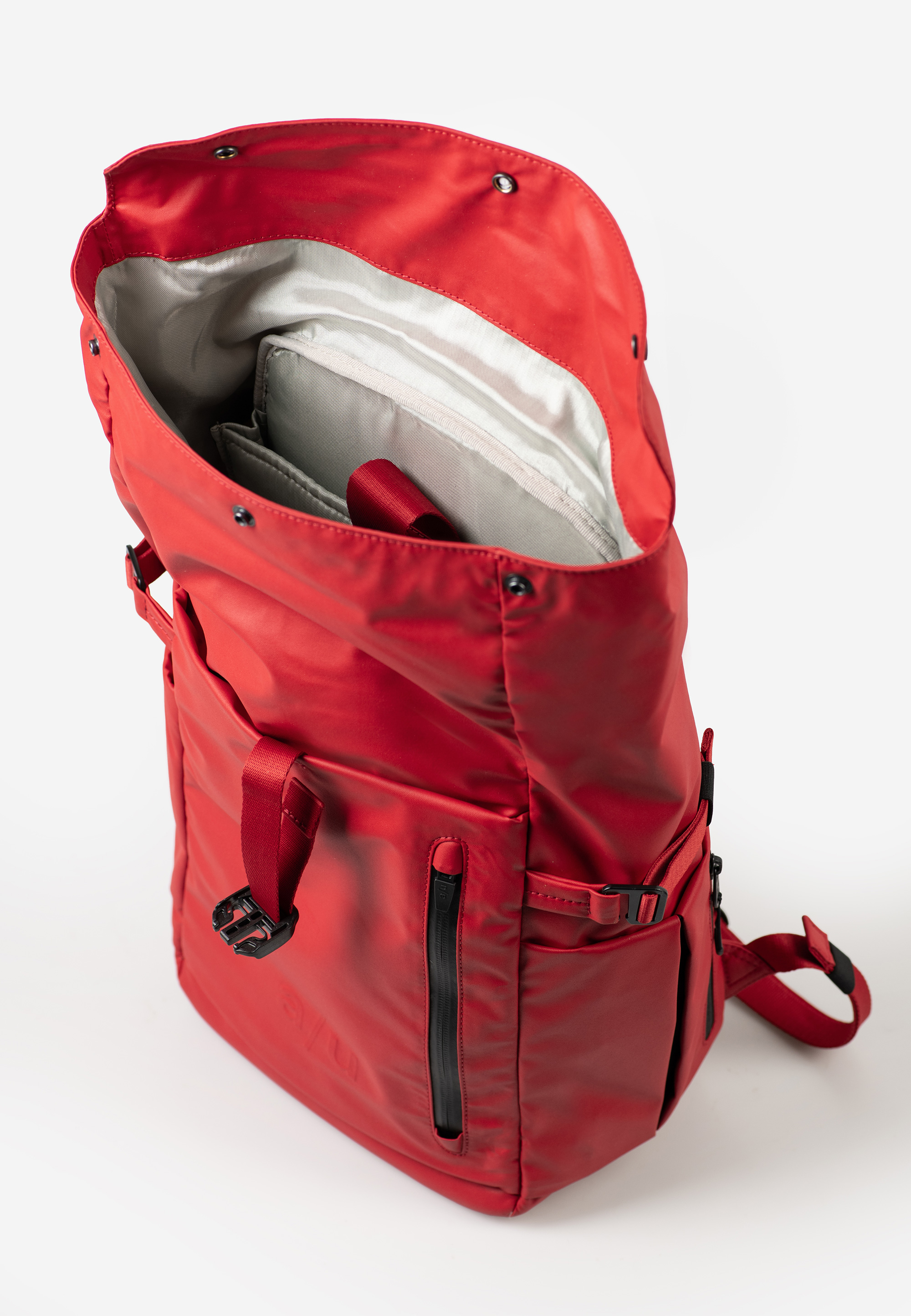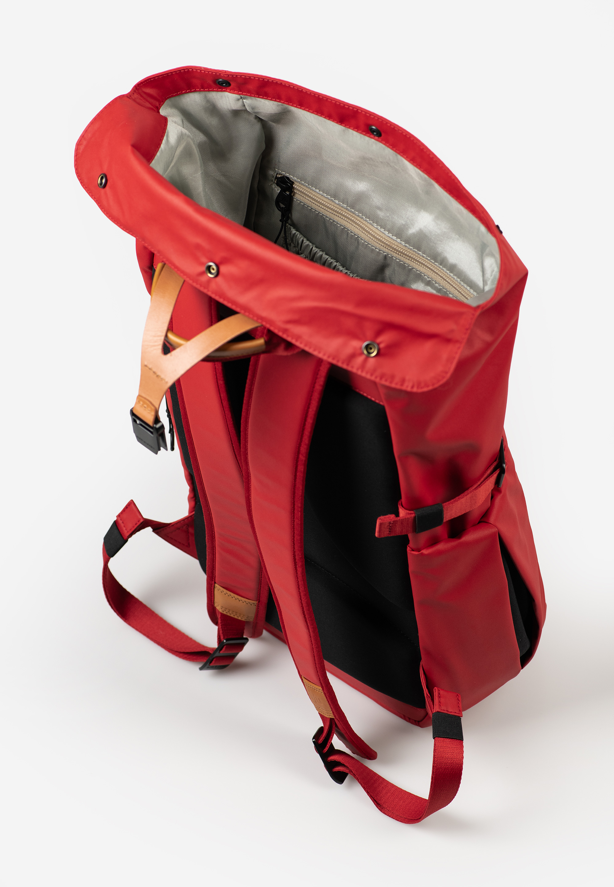 Tokachi RE scores with its lightweight, sophisticated design that can take on any adventure. The weatherproof backpack is made from recycled nylon. Applications and a base made from carefully tanned premium leather create a distinctive look. The flexible main compartment with roll closure, a padded notebook compartment, various inner and outer pockets and practical details such as pen loops and a key strap ensure optimal organization. Padded shoulder straps and an ergonomic back guarantee the highest level of carrying comfort.