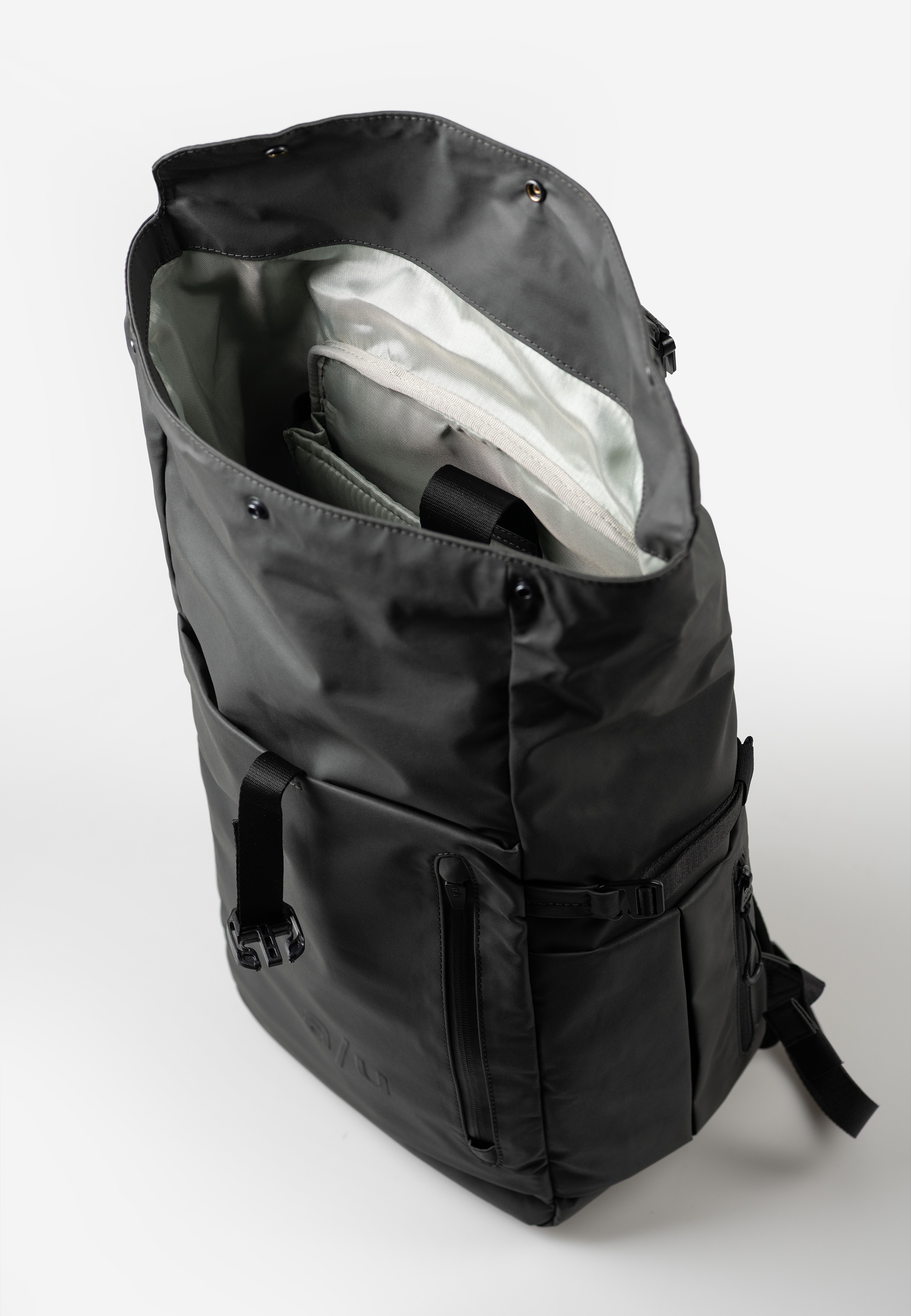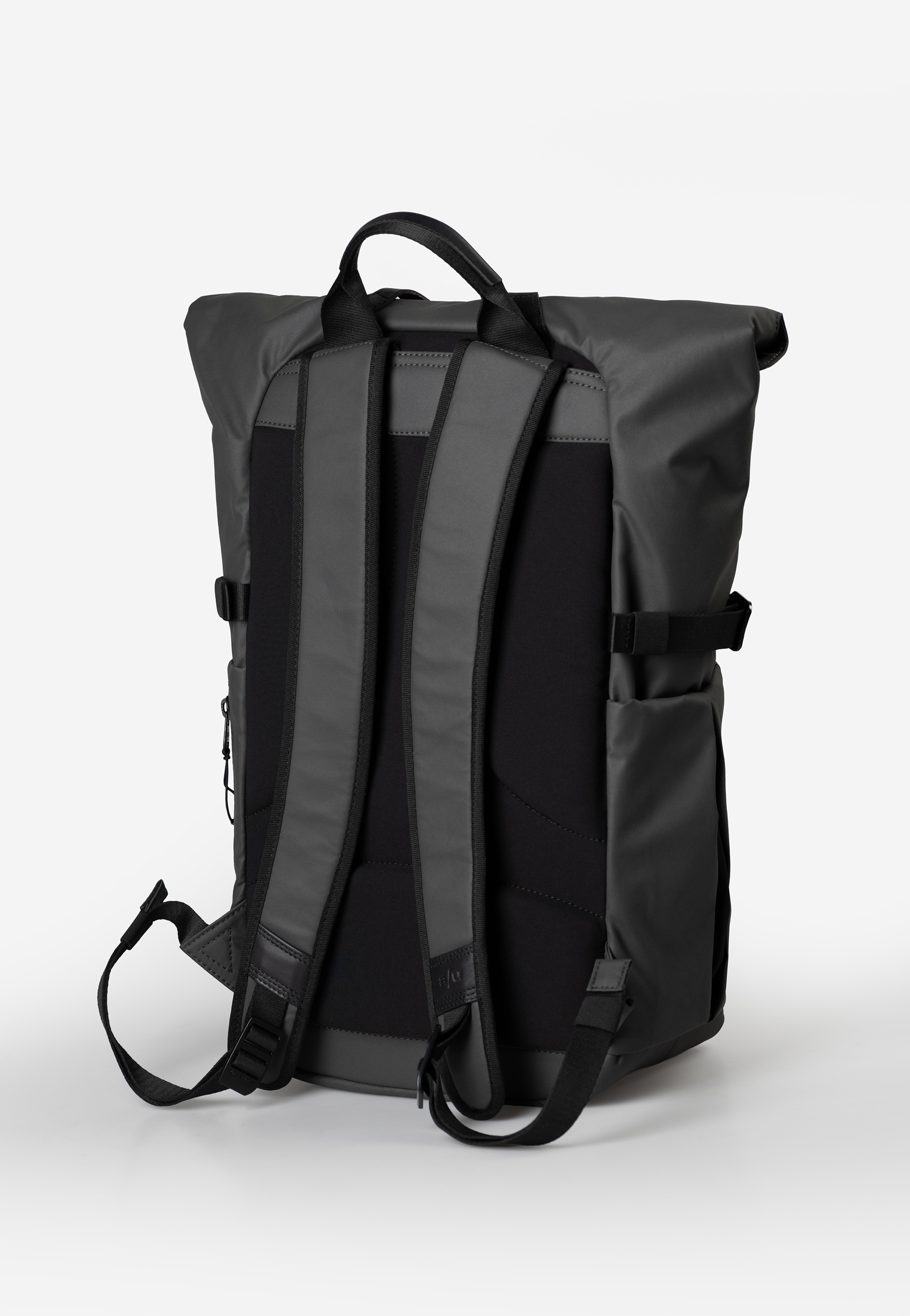 Tokachi RE scores with its lightweight, sophisticated design that can take on any adventure. The weatherproof backpack is made from recycled nylon. Applications and a base made from carefully tanned premium leather create a distinctive look. The flexible main compartment with roll closure, a padded notebook compartment, various inner and outer pockets and practical details such as pen loops and a key strap ensure optimal organization. Padded shoulder straps and an ergonomic back guarantee the highest level of carrying comfort.