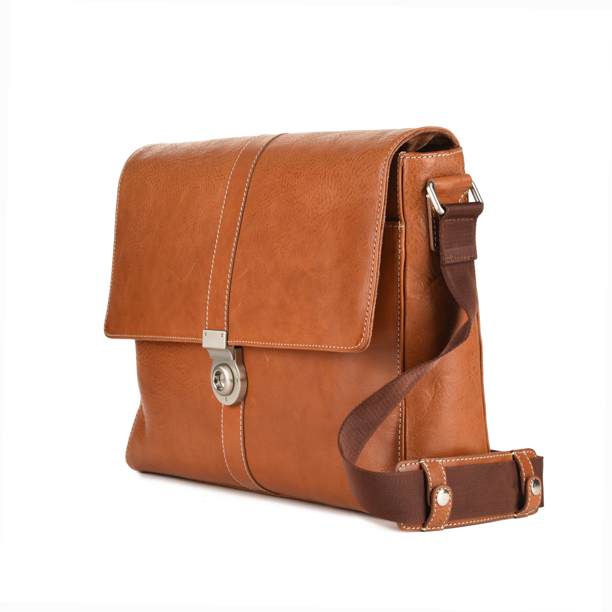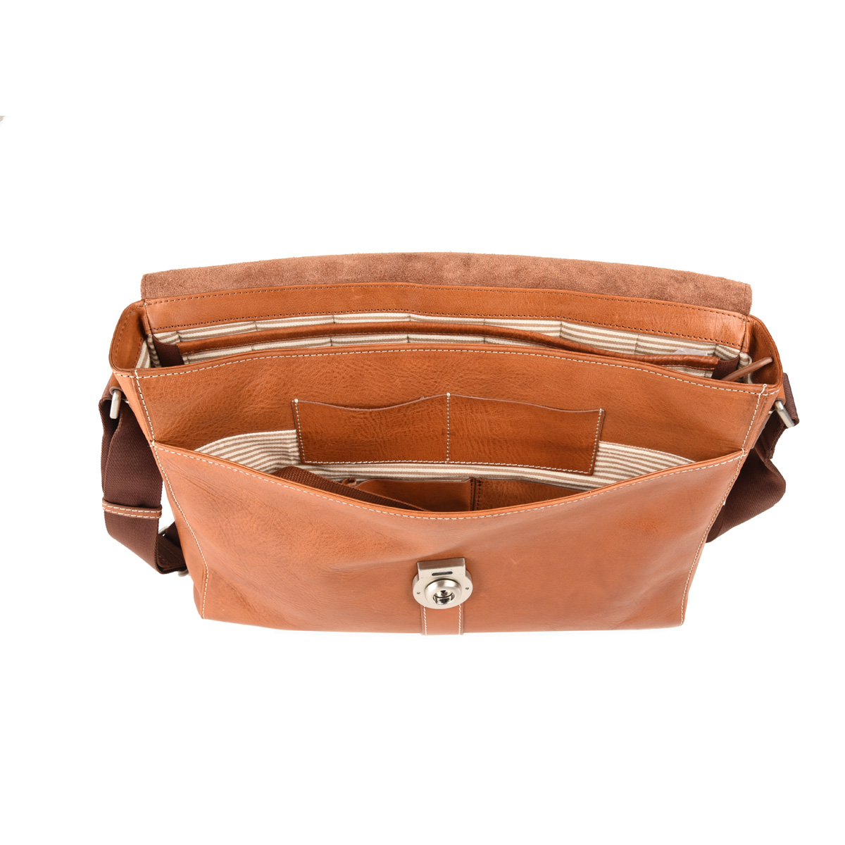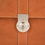 - großes Hauptfach, passend für A4-Unterlagen, schließt mit Lasche und Schloss