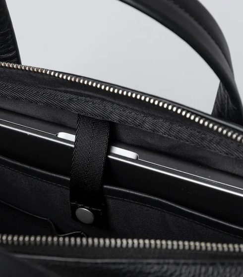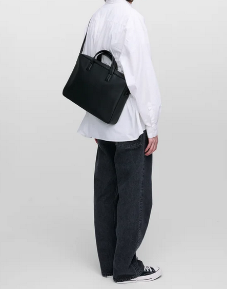 "Leather briefcase" ist eine klassische Businesstasche von sandqvist. Und wenns mal doch etwas schwerer wird kann man den Gurt einhängen und im Nu wird daraus eine Umhängetasche. Auch für ein 14" Notebook ist diese Tasche groß genug.