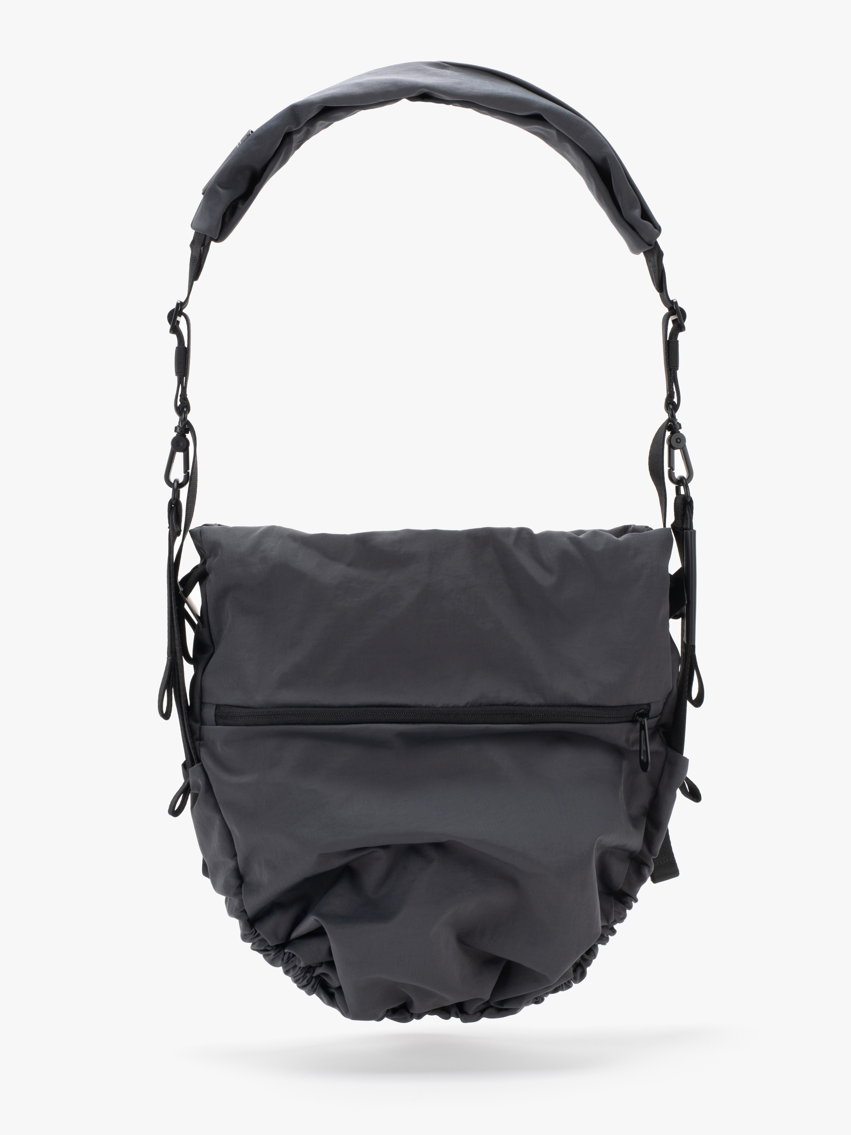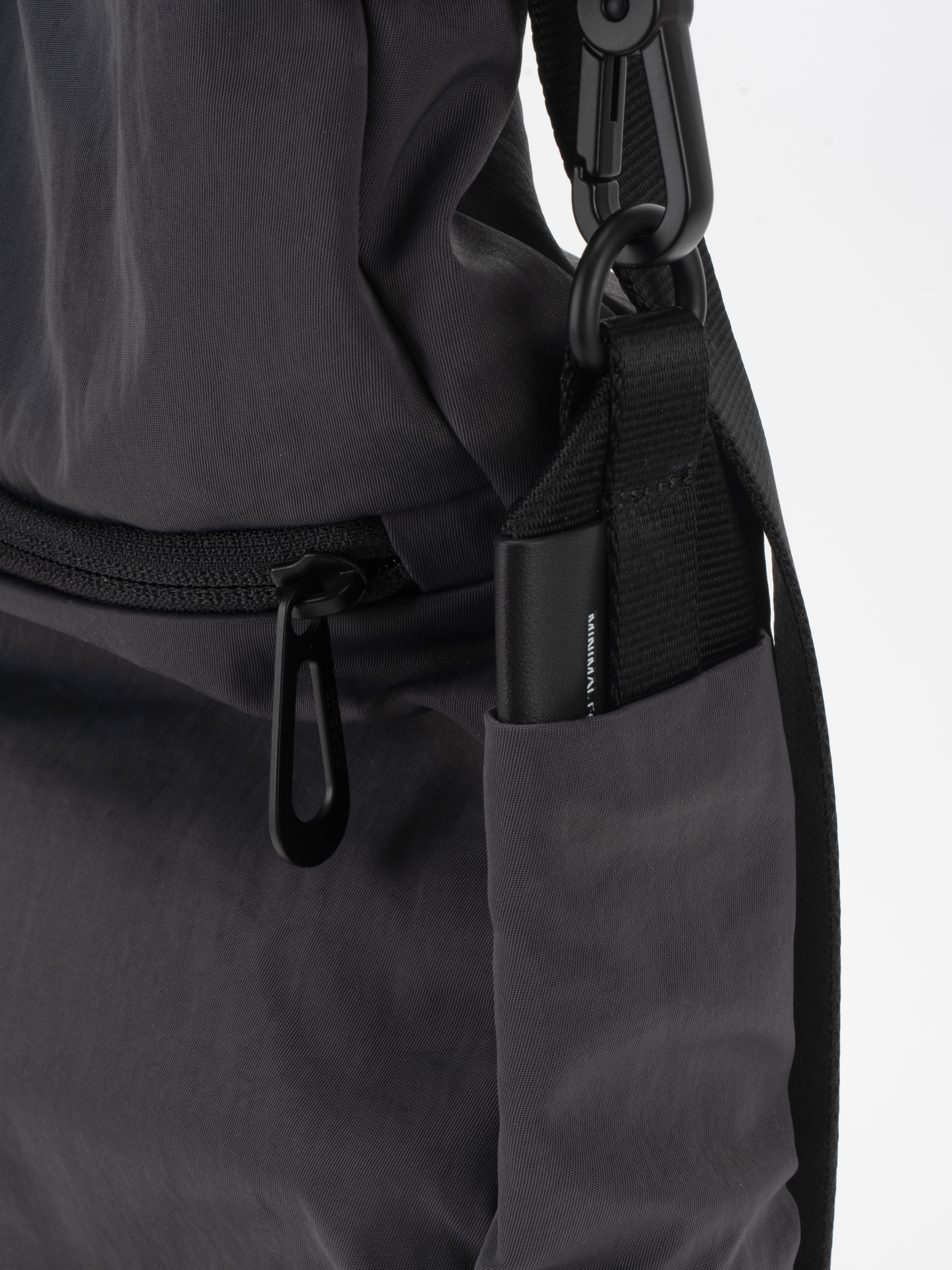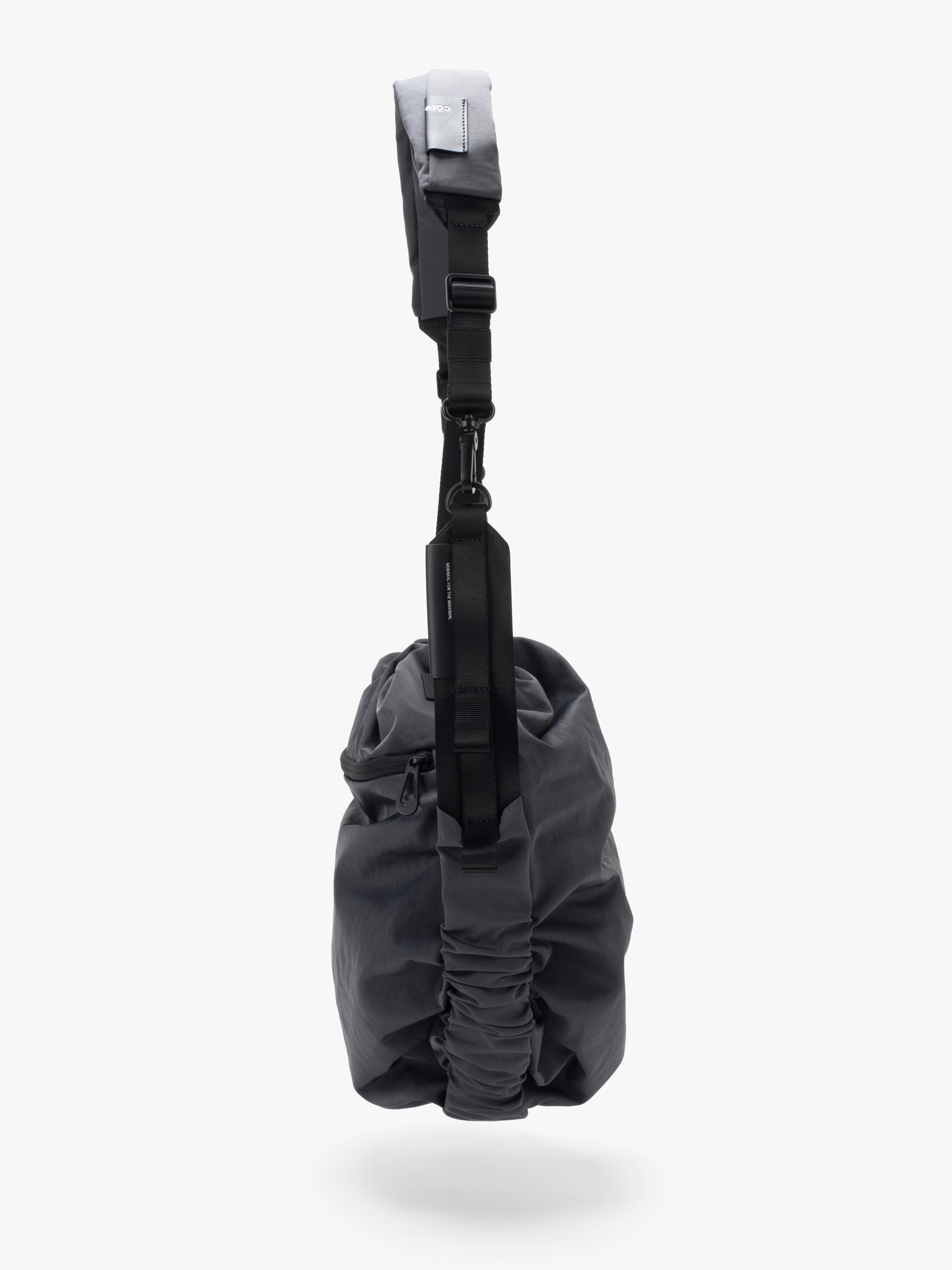 Crafted from Slate Grey nylon, the UVA, our newest crossbody bag, features adjustable straps with gathered details that allow the bag's volume to be customized to suit the user's needs.