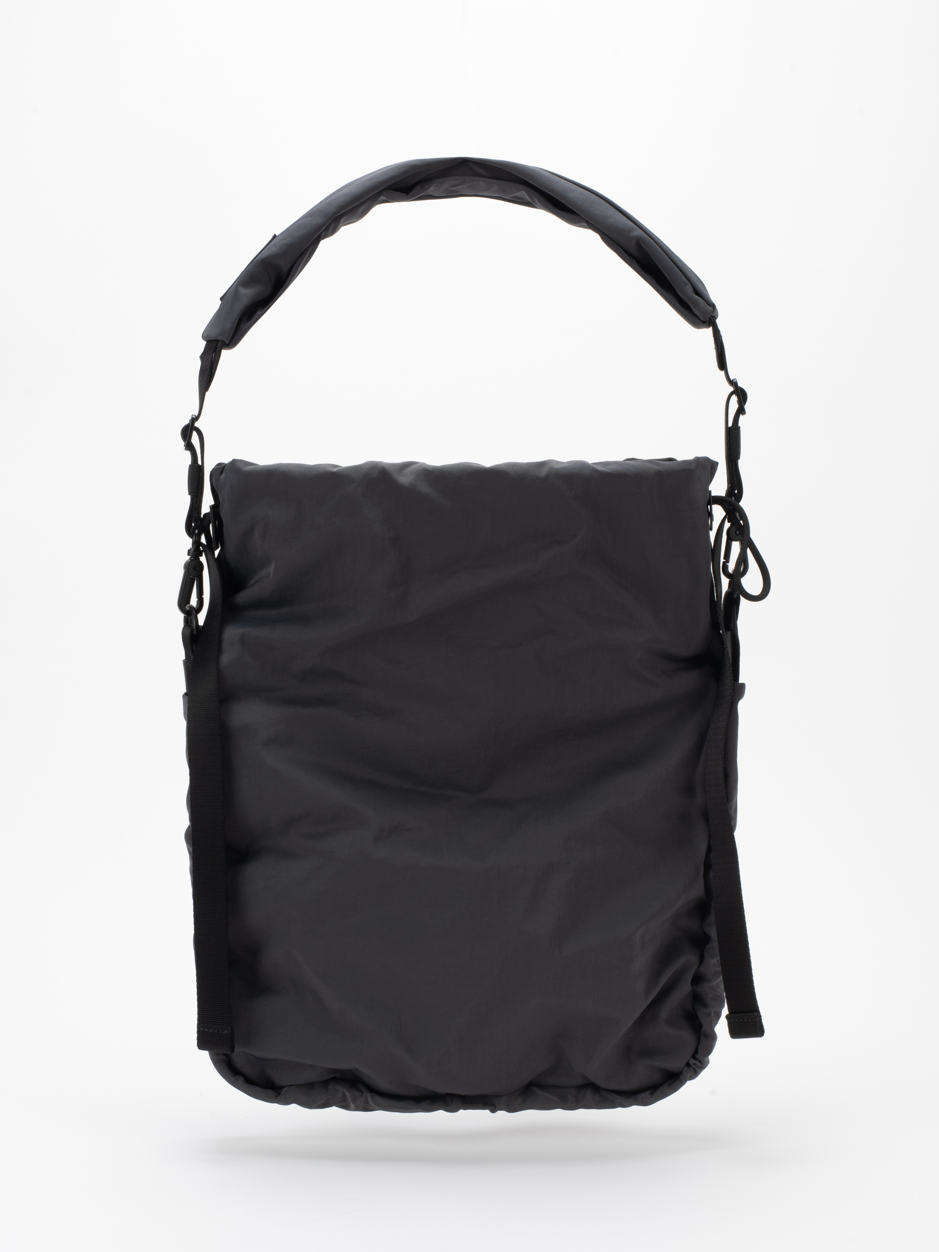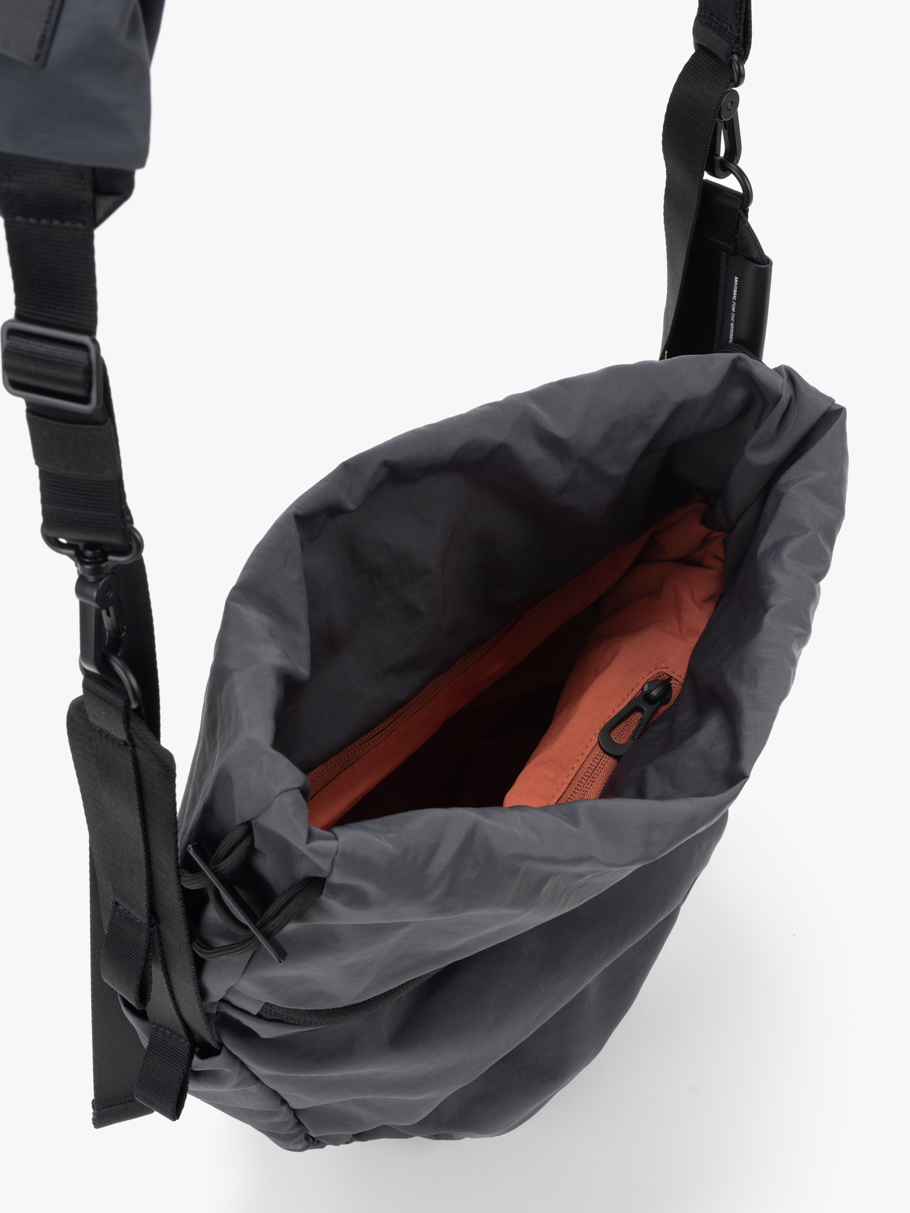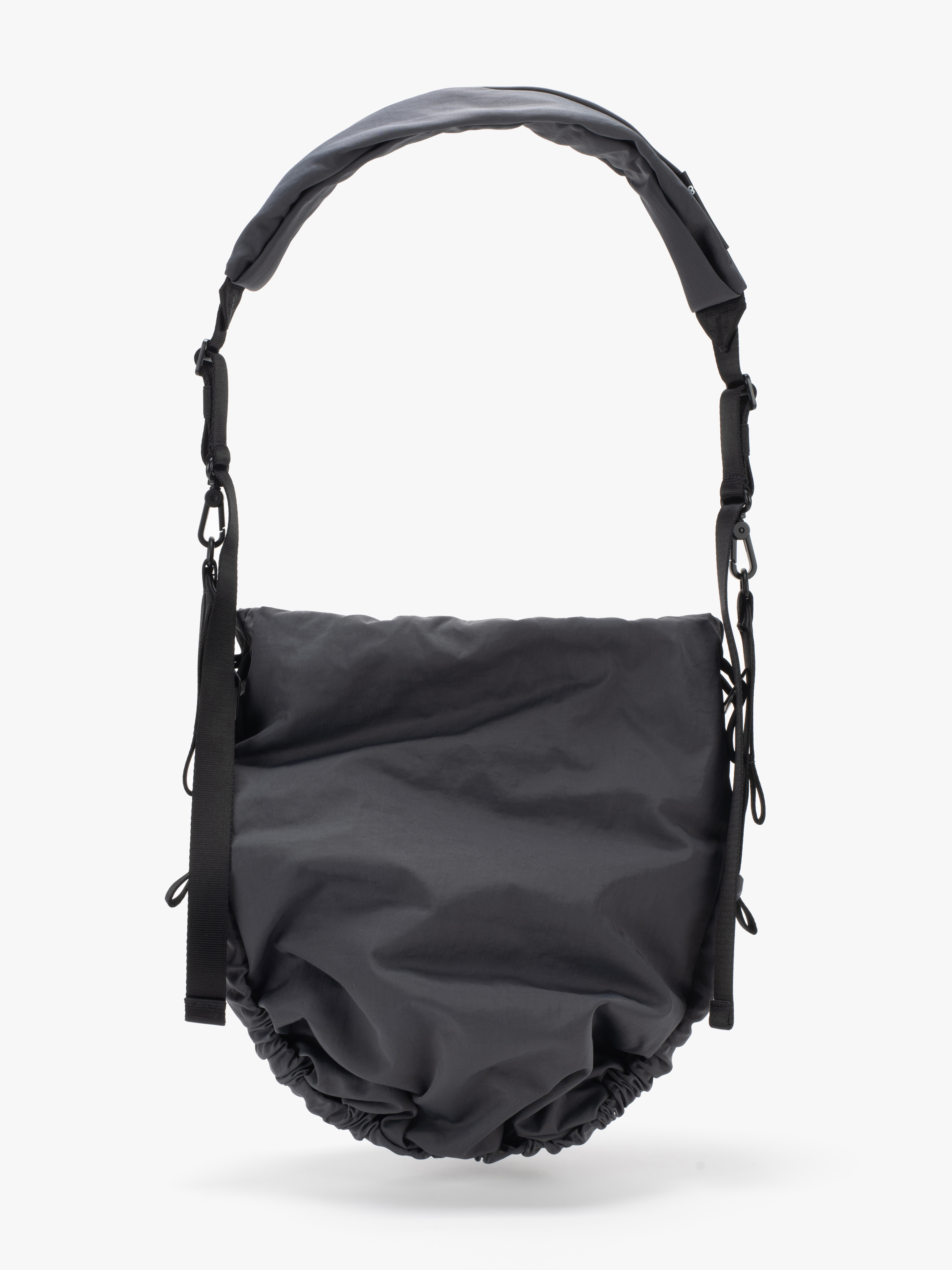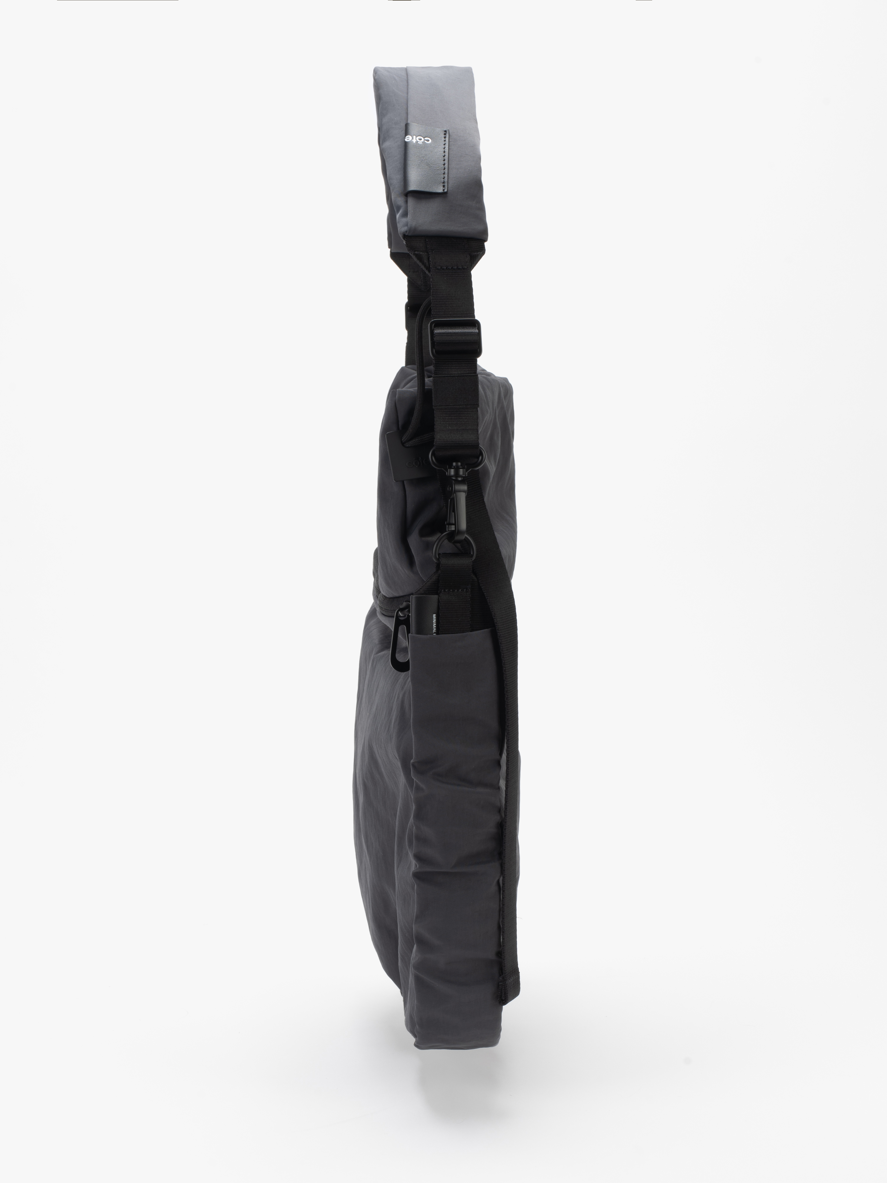 Crafted from Slate Grey nylon, the UVA, our newest crossbody bag, features adjustable straps with gathered details that allow the bag's volume to be customized to suit the user's needs.