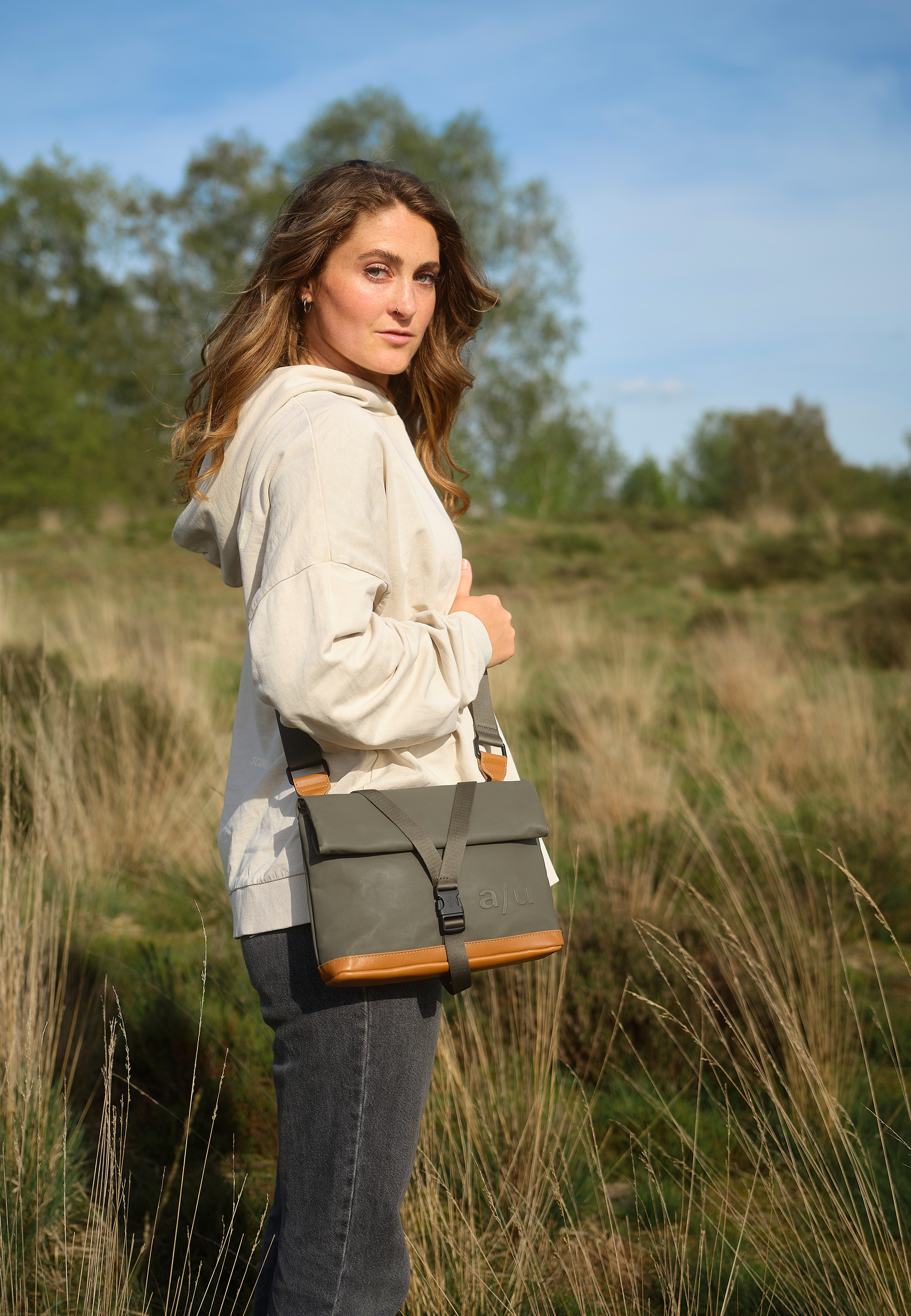 - Hauptfach mit Druckknöpfen und Roll-/Wendeverschluss