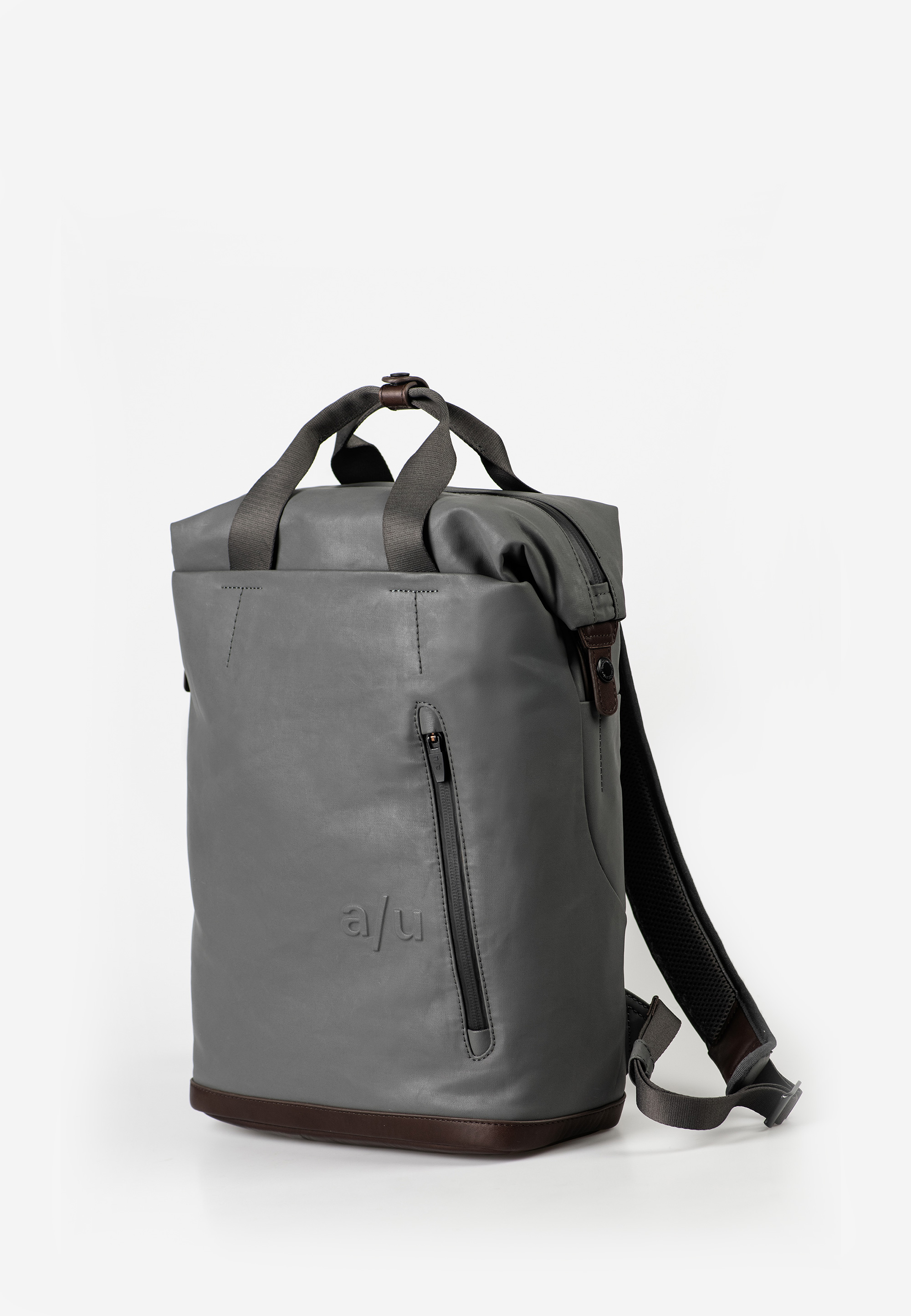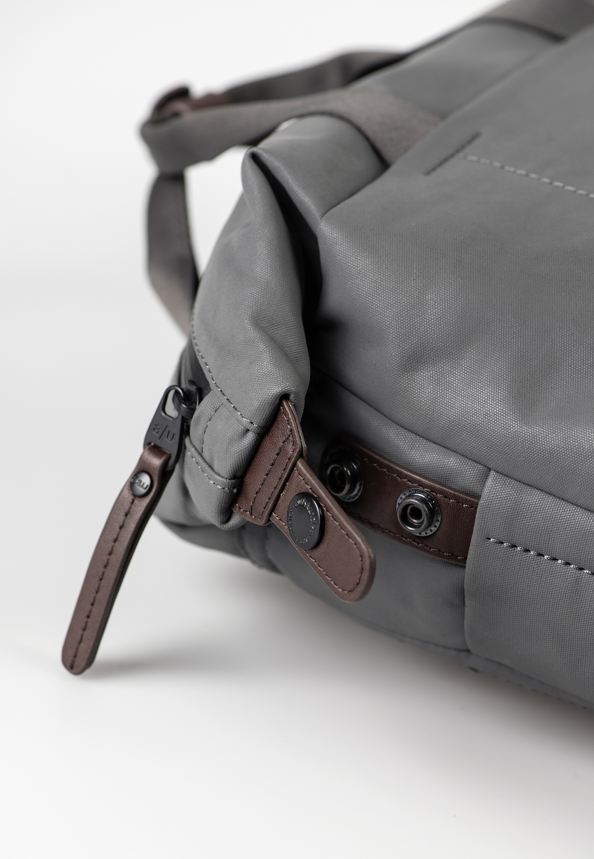 coated organic cotton, leather