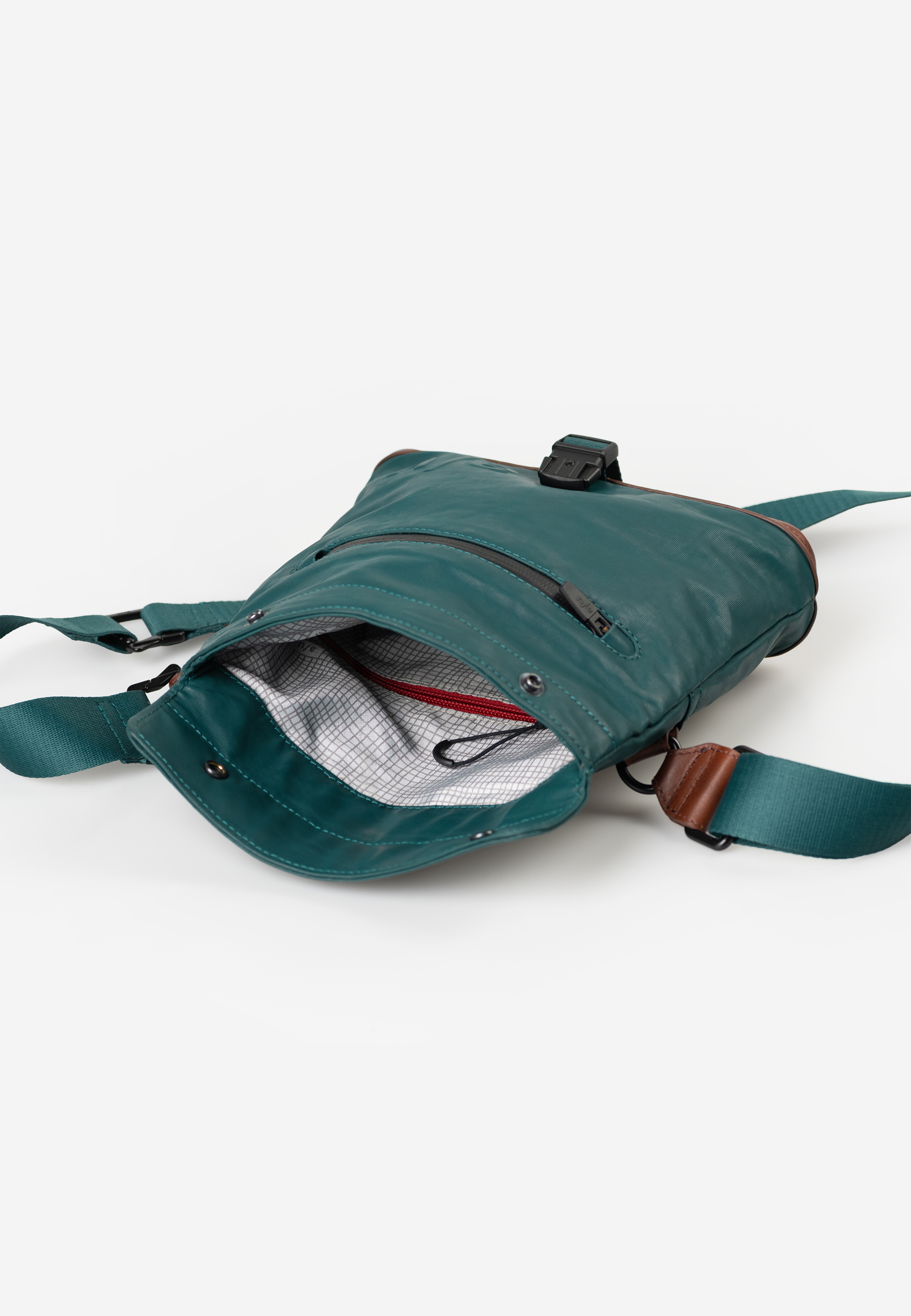 Tsu ist ein echter Allrounder, denn die Bauchtasche mit Rollverschluss und der markanten Front lässt sich auch crossbody als Umhängetasche tragen, die dann sogar noch etwas mehr Volumen bietet. Typisch für die Styles der JAPAN-Serie kombiniert Tsu wasserabweisend beschichtete Bio-Baumwolle mit authentischem Premium-Leder.