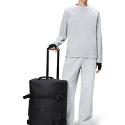Dieser wasserdichte Trolley kombiniert das charakteristische wasserdichte PU von Rains mit einer Hartschale mit halber Silhouette für aufrechte Stabilität und allgemeine Haltbarkeit beim Transport.