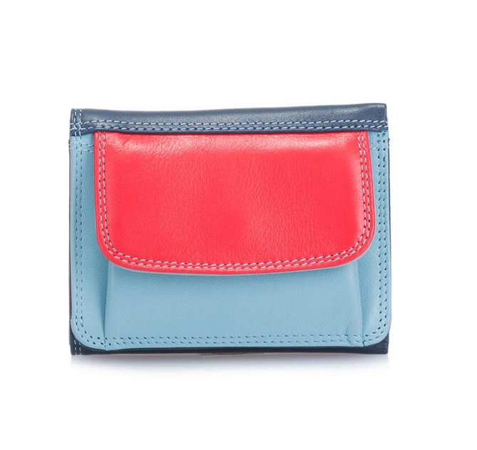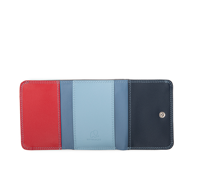 This mini trifold is ideal for when you're tight on space! It has a deep front pocket with popper closure for loose change, while inside features three slip pockets for cards and a full-length note section. With RFID technology.
