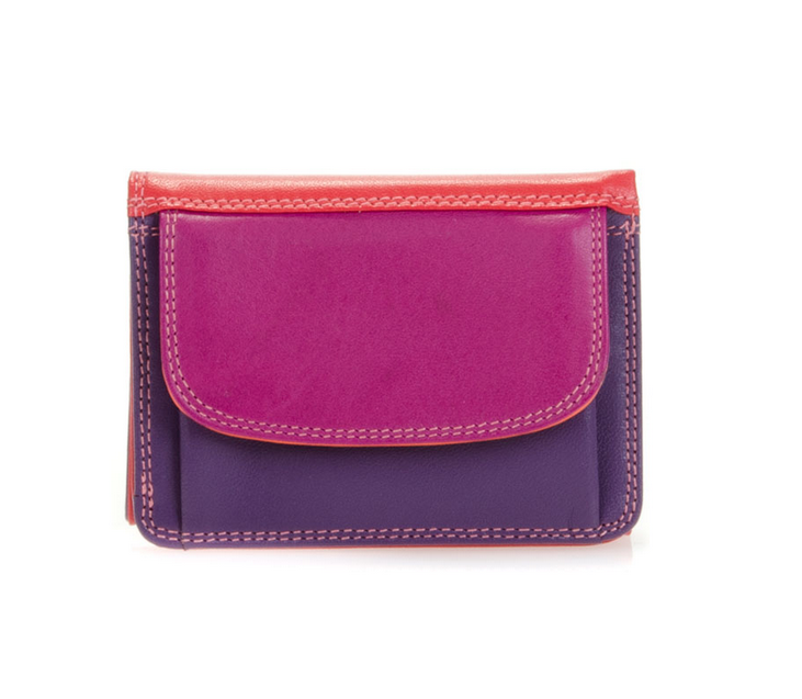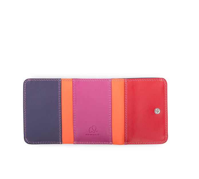 This mini trifold is ideal for when you're tight on space! It has a deep front pocket with popper closure for loose change, while inside features three slip pockets for cards and a full-length note section. With RFID technology.