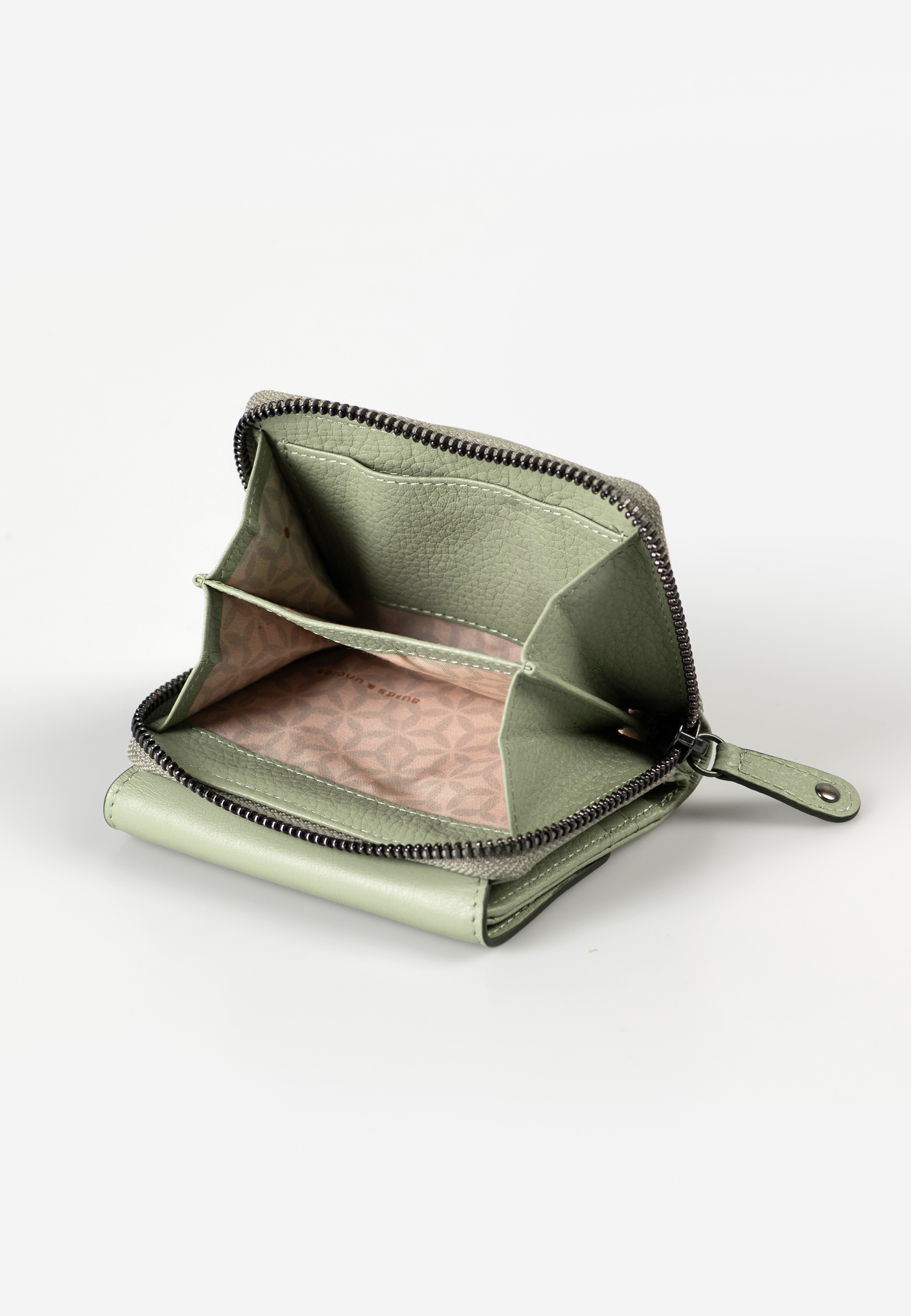 - rückseitiges, unterteiltes Münzfach mit Reißverschluss