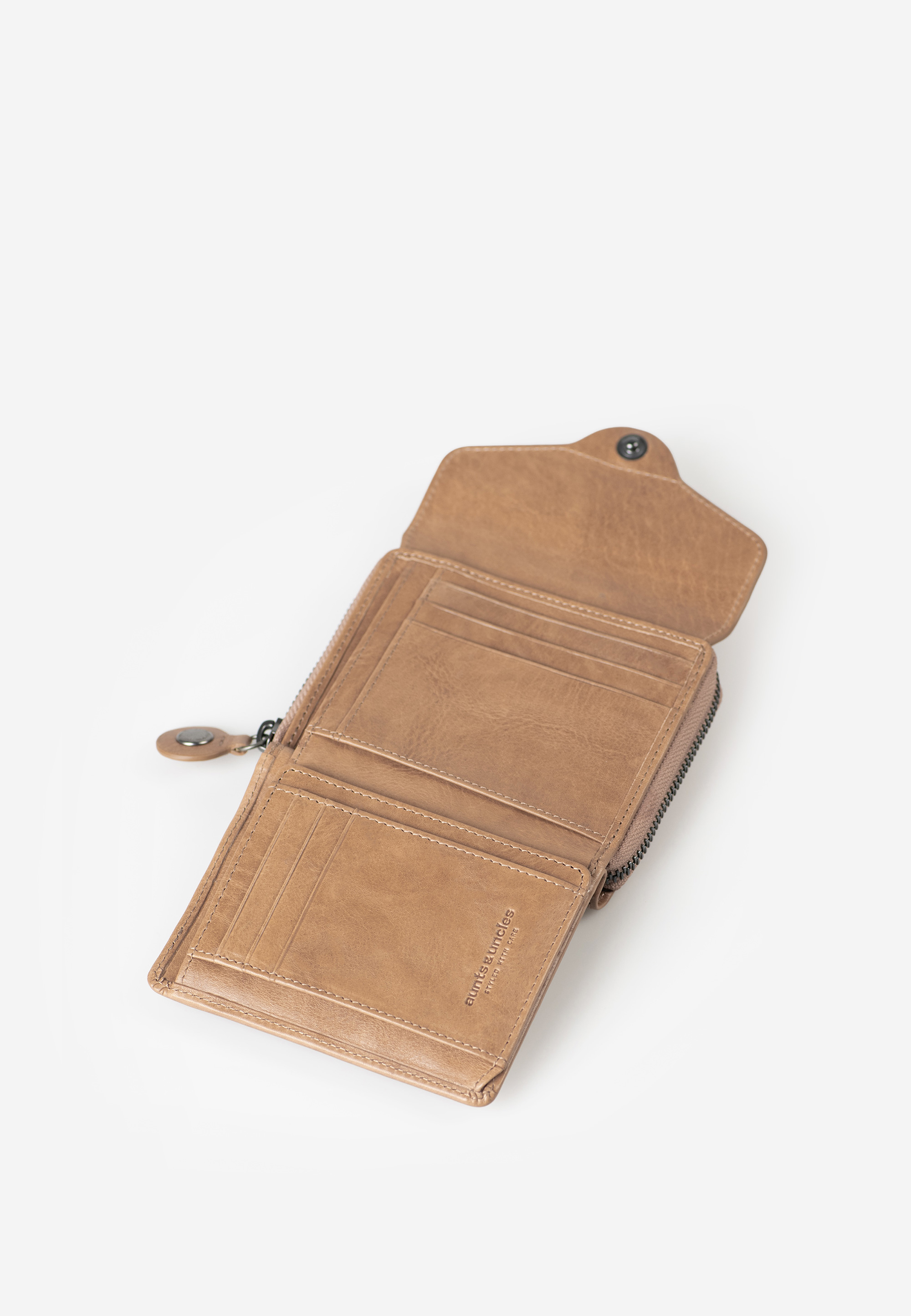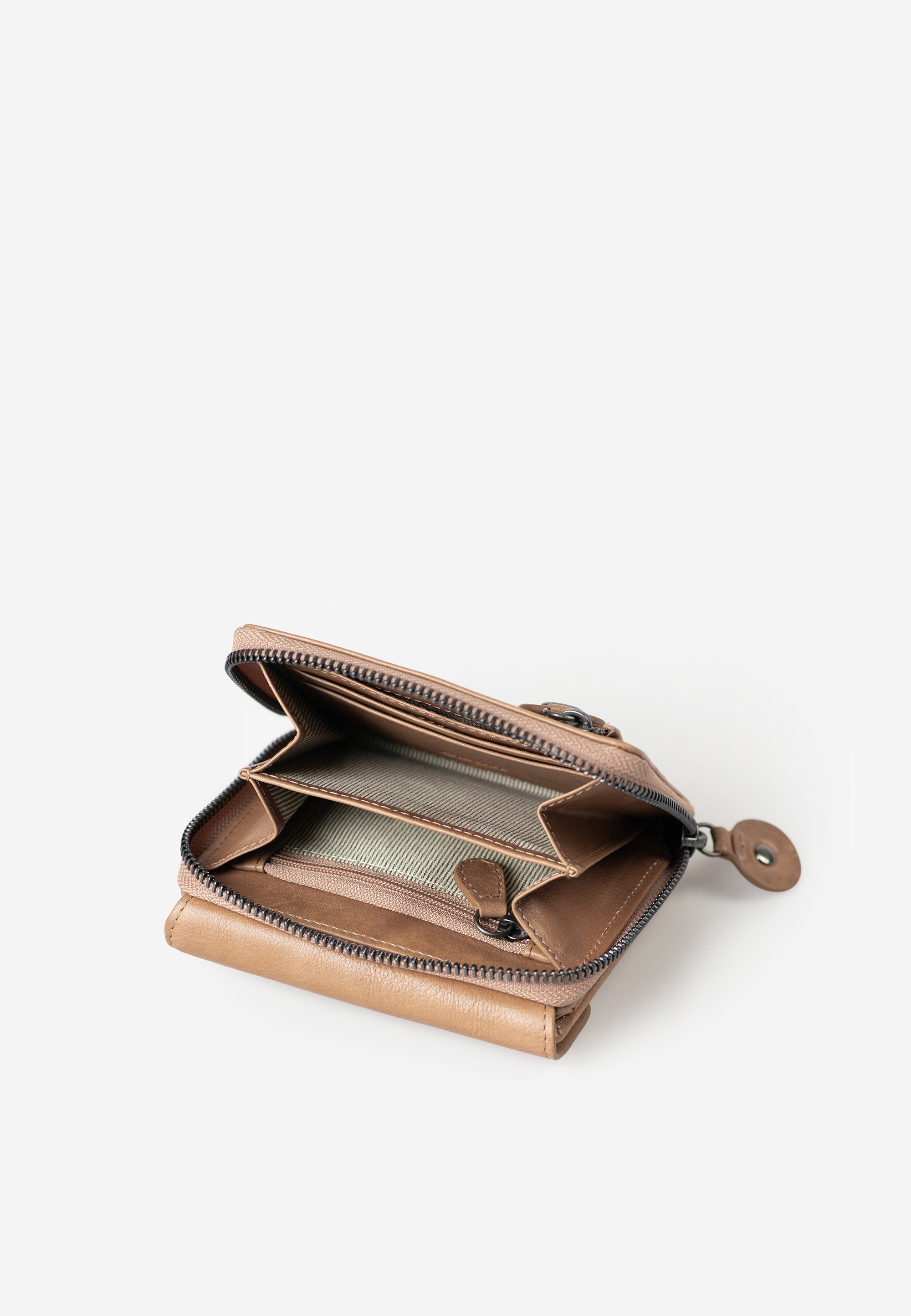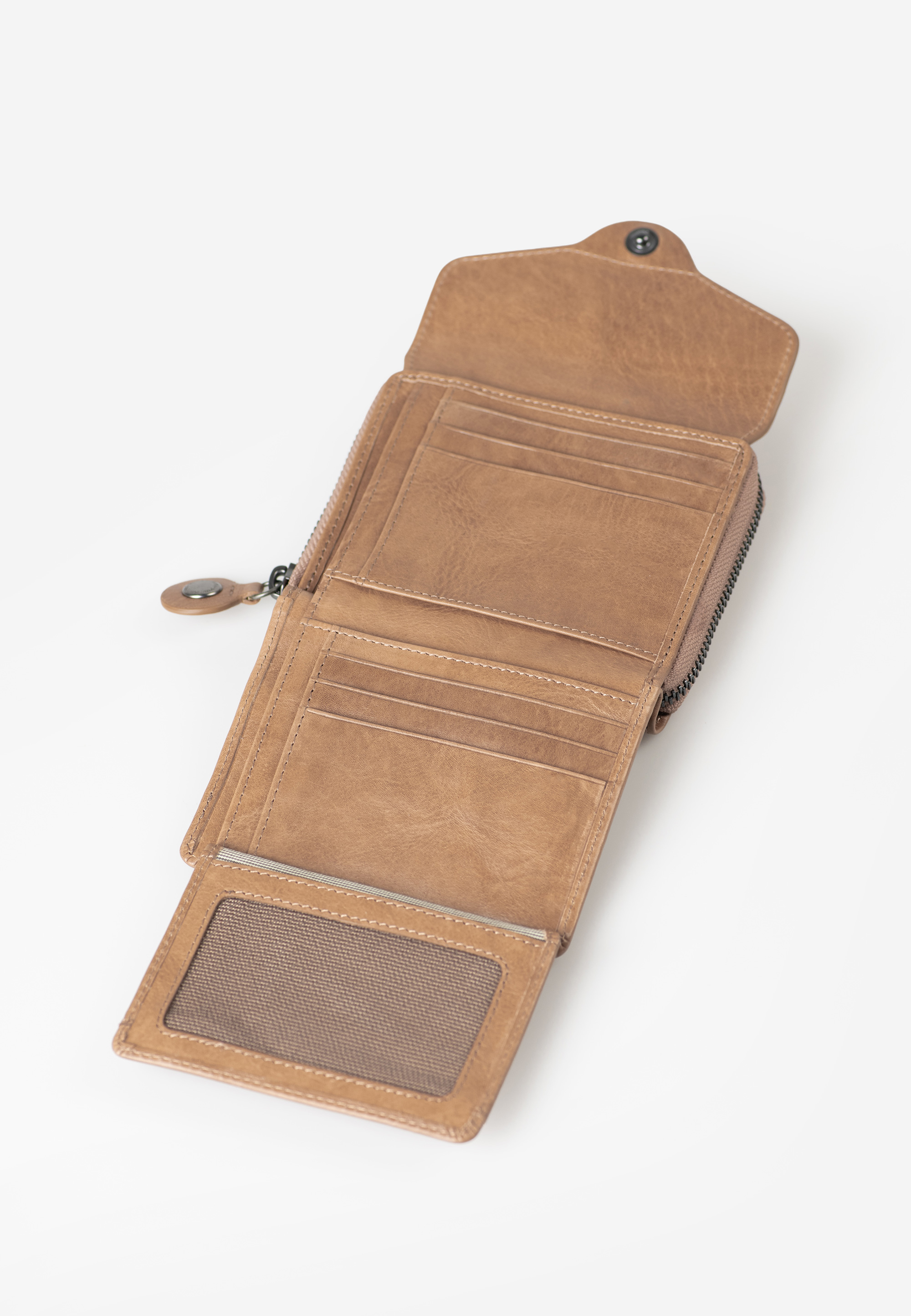 Lesley ist die größere Variante von Judy, ebenfalls aus nachhaltig gegerbtem Premium-Leder gefertigt und mit einem aufklappbarem Hauptfach und einem weiterem Fach mit umlaufendem Reißverschluss. Lesley bringt 12 Kartenfächer und fünf große Einsteckfächer mit, von denen eines transparent ist. Sowohl das Münz- als auch das Scheinfach sind unterteilt – für noch mehr Ordnung und Übersicht. Der integrierte RFID-Schutz schützt die Daten auf deinen Karten und Ausweisen gegen Datendiebstahl.