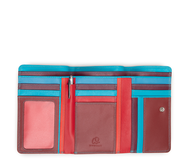Diese dreifach faltbare mittelgroße Geldbörse macht Schluss mit dem Durcheinander in Ihrer Handtasche! Aufgeklappt bietet sie reichlich Platz für Karten und Geldscheine sowie ein Fach mit Sichtfenster für Ihren Ausweis oder ein Foto. Ein schicker silberfarbener Stift ist ebenfalls enthalten!
