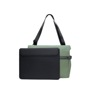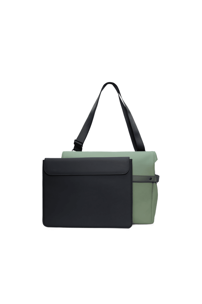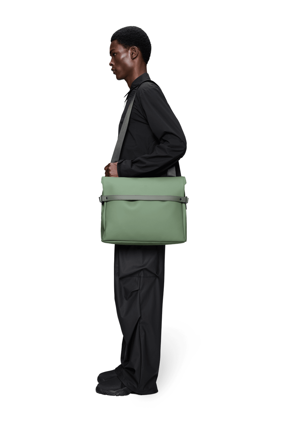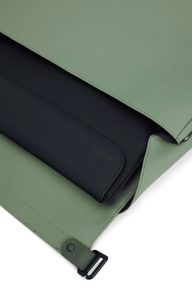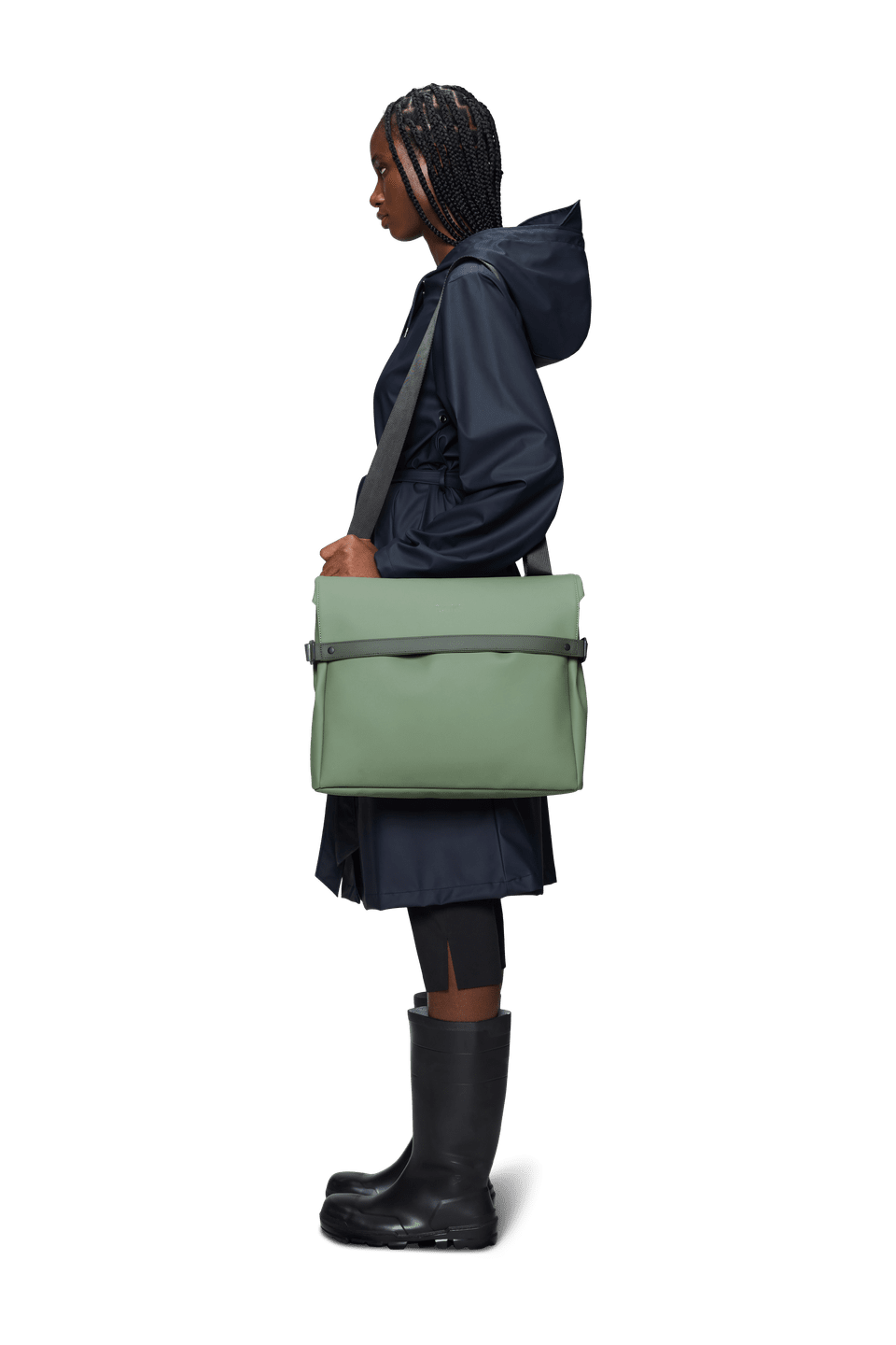 Diese Tasche ist aus dem charakteristischen wasserdichten PU-Gewebe von Rains gefertigt, das robust und langlebig ist und sich angenehm anfühlt.