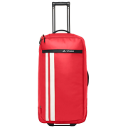 So geht nachhaltig! Auf Reisen bietet der 90 Liter Reisetrolley jede Menge Platz für Gepäck, das dank der Packgurte und des Netz-Zwischenbodens mit Reißverschluss ordentlich getrennt untergebracht werden kann. Weich gepolsterte Tragegriffe bieten flexible Tragemöglichkeiten. Dank der leise laufenden Gummirollen und des ausziehbaren Teleskopgriffs kann der Trolley auch über längere Distanzen bequem gezogen werden. Auf der Vorderseite sind die beiden VAUDE Kultstreifen reflektierend und zudem im oberen Teil mit praktischen Halteschlaufen versehen.