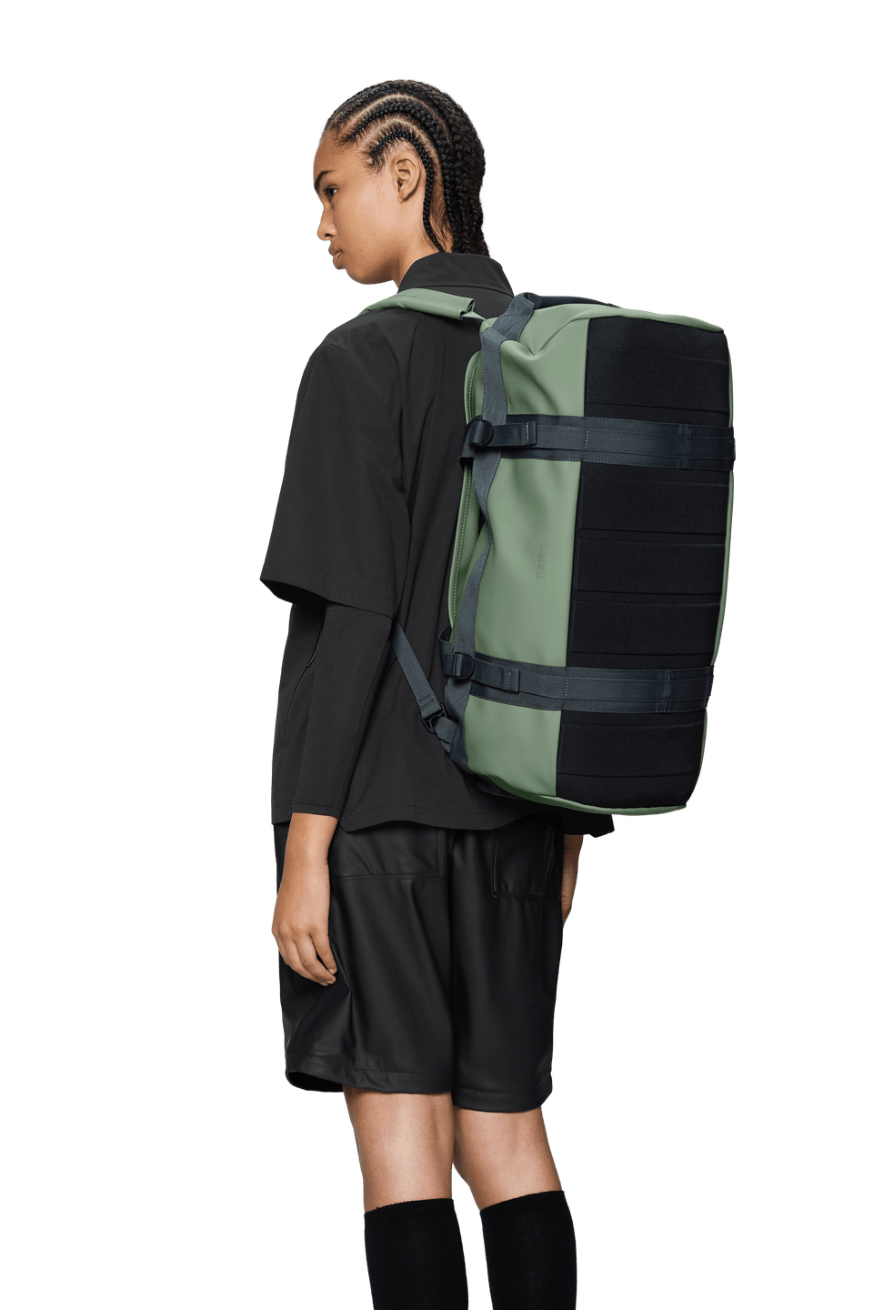 Diese Tasche ist aus dem charakteristischen wasserdichten PU-Gewebe von Rains gefertigt, das robust und langlebig ist und sich angenehm anfühlt.