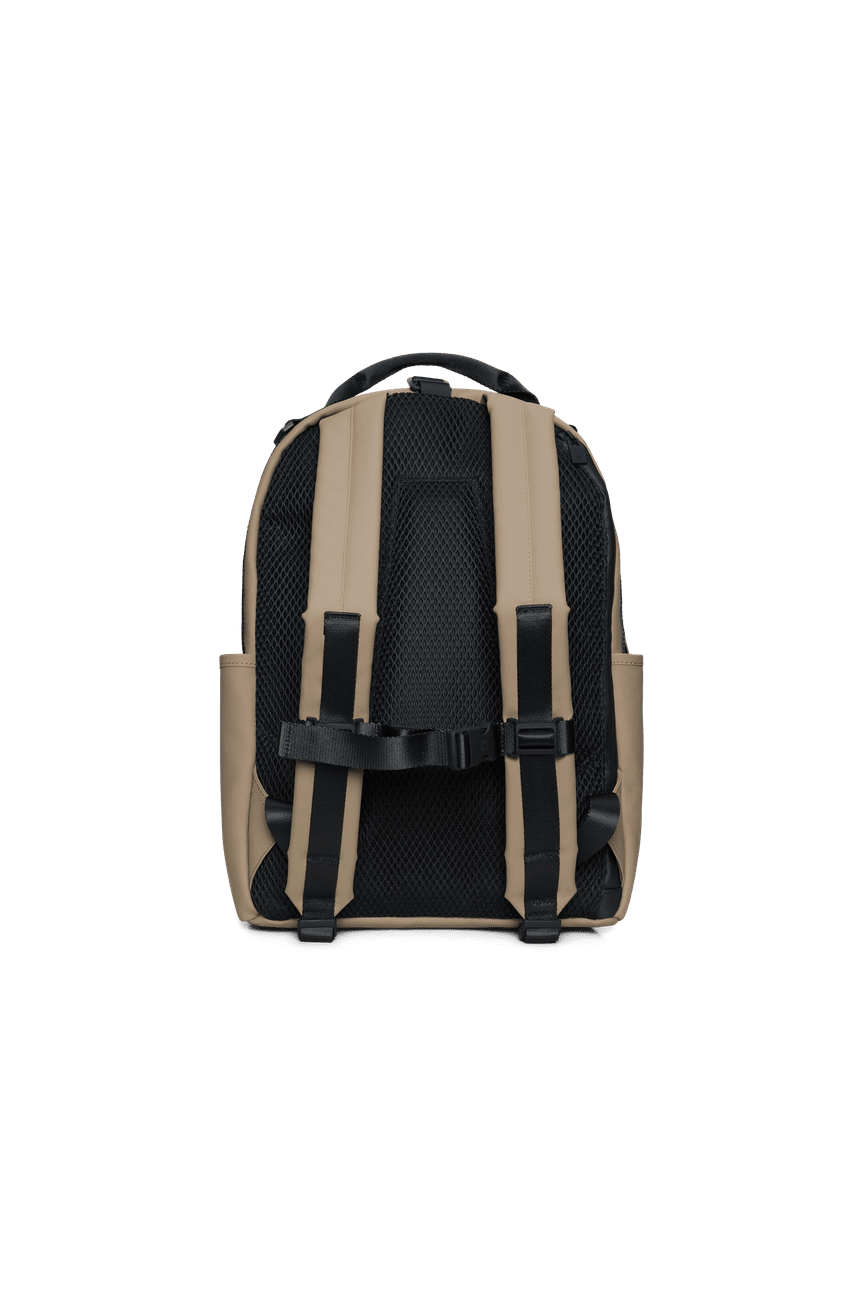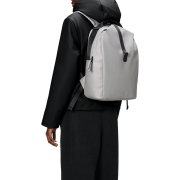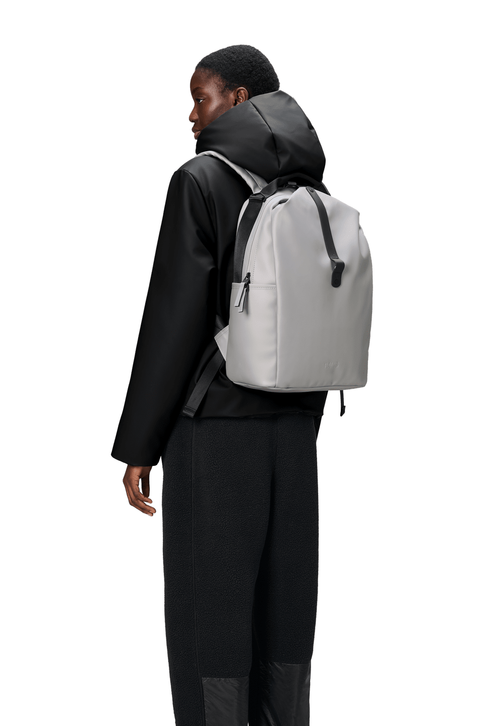 Der Rucksack ist aus dem charakteristischen wasserdichten PU-Gewebe von Rains gefertigt, das robust und langlebig ist und sich angenehm anfühlt.