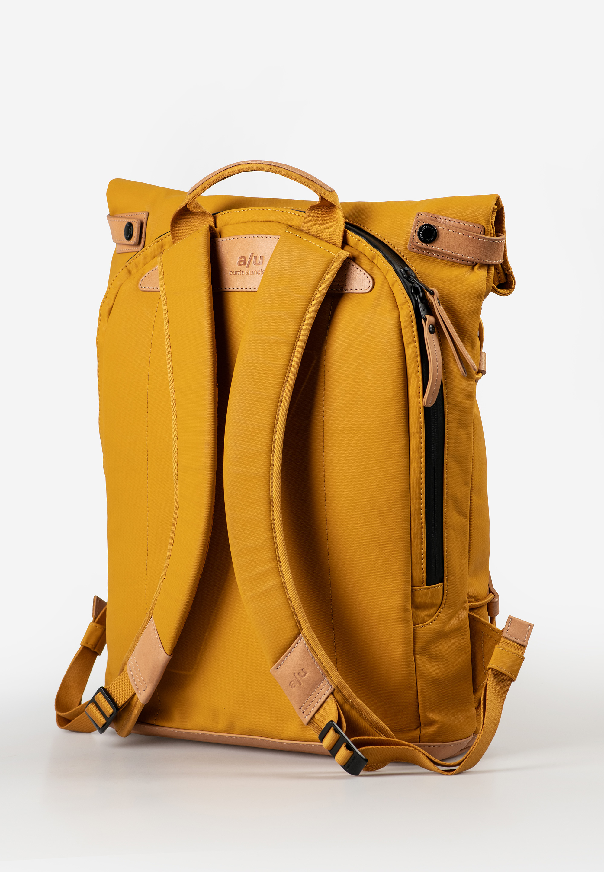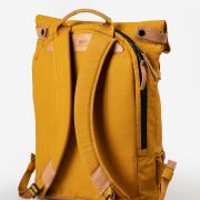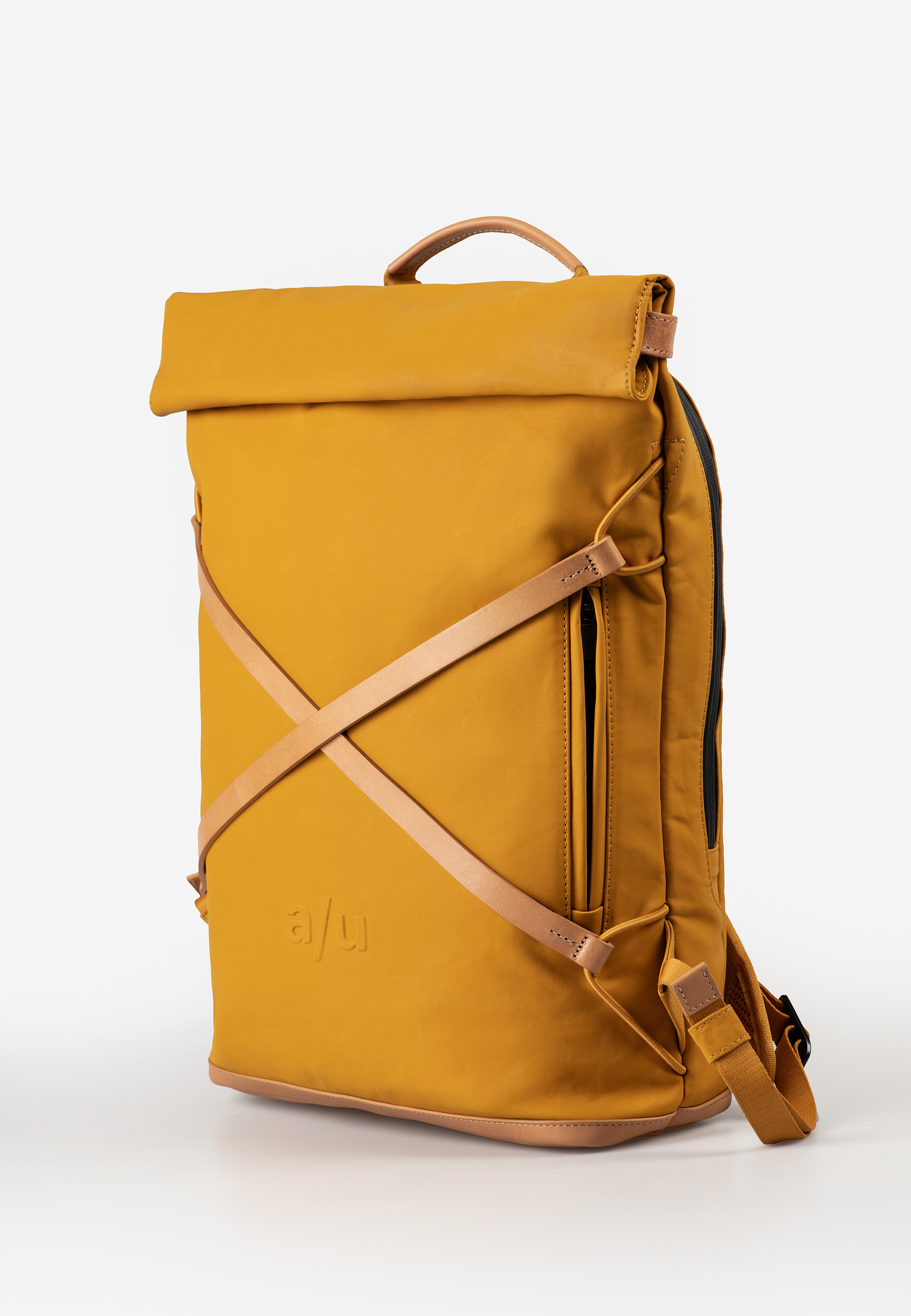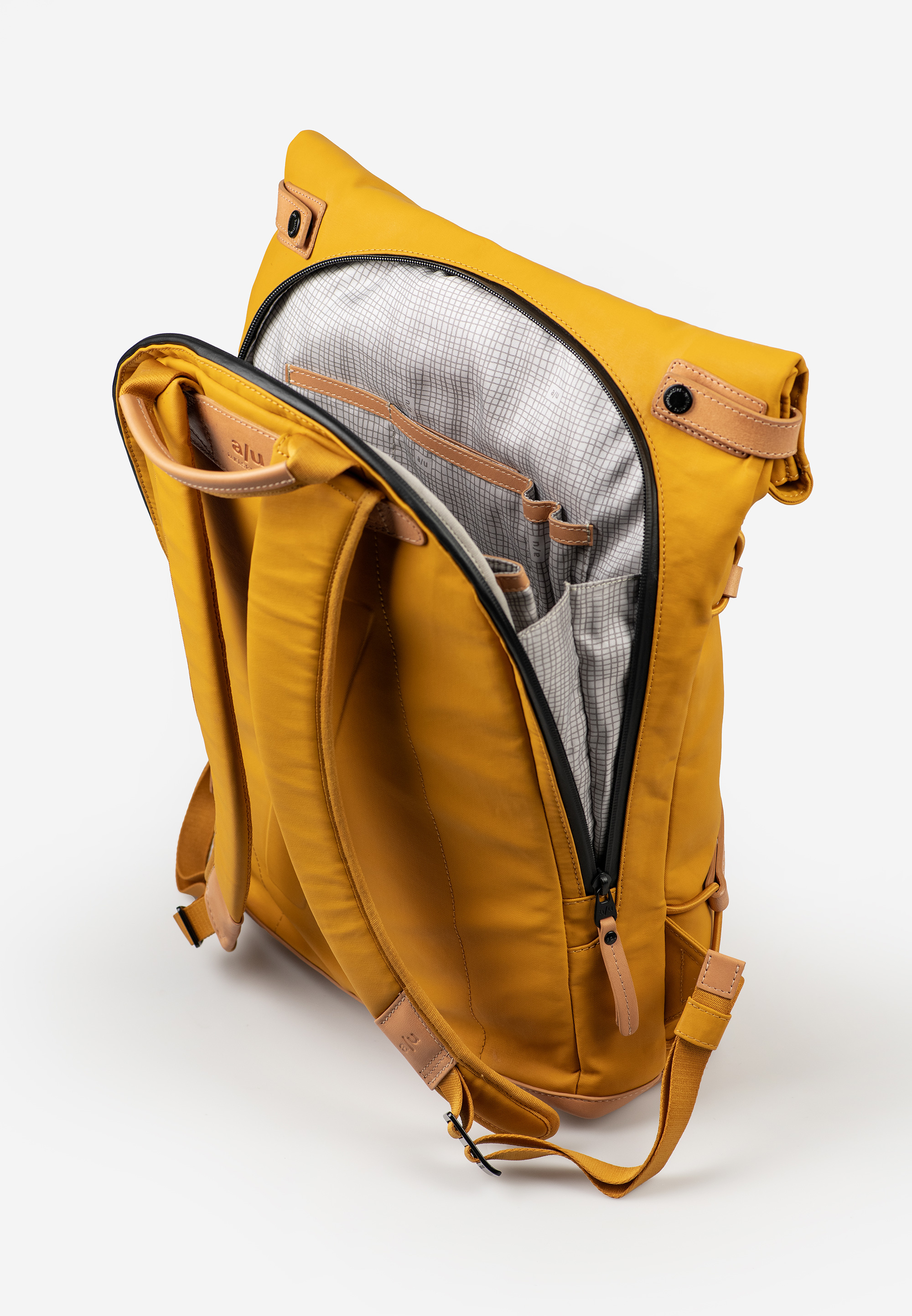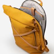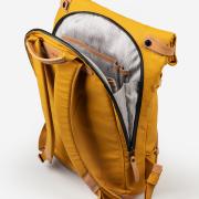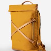Osaka verbindet wasserabweisendes Baumwollgewebe mit authentischem Leder. Der leichte Roll-top-Rucksack mit gepolsterten Schultergurten und seidenmattem Coating bietet Platz für Unterlagen in A4-Format und ein Notebook bis 15 Zoll.