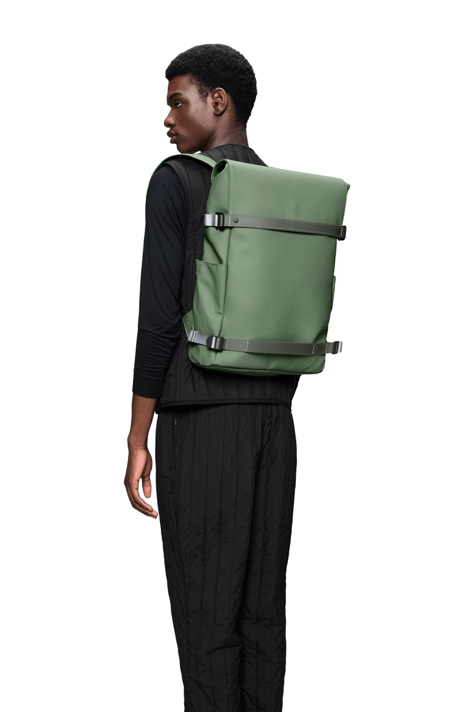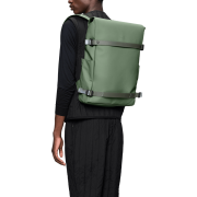 Der Rucksack ist aus dem charakteristischen wasserdichten PU-Gewebe von Rains gefertigt, das robust und langlebig ist und sich angenehm anfühlt.
