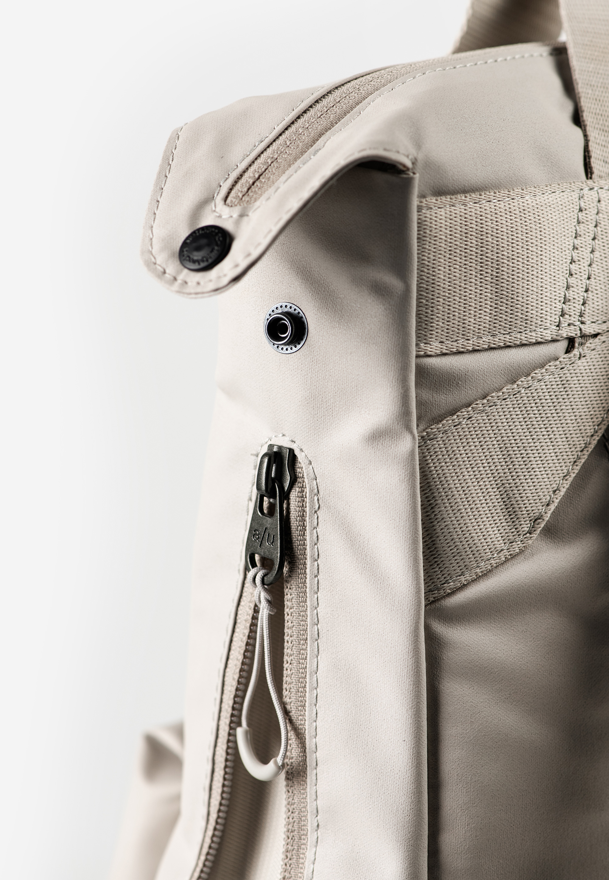 Alle Styles haben eine wasserabweisende Imprägnierung. Ein zusätzliches PFC- und PFAS-freies Coating verleiht ihnen eine hochfunktionelle, wasserabweisende Oberfläche. Darüber hinaus verwenden wir spezielle Hochleistungsfäden, die kein Wasser ziehen. Die Styles in der Farbe cloud nine sind aus dicht gewebtem, nach dem Global Recycled Standard zertifiziertem Nylon gefertigt und mit einer zusätzlichen schmutzabweisenden Beschichtung versehen. Das dicht gewebte Riptop-Material der Modelle in der Farbe black besteht aus recyceltem Nylon und Baumwolle. Im Inneren ist ein strapazierfähiger Futterstoff aus recyceltem Polyester verarbeitet.