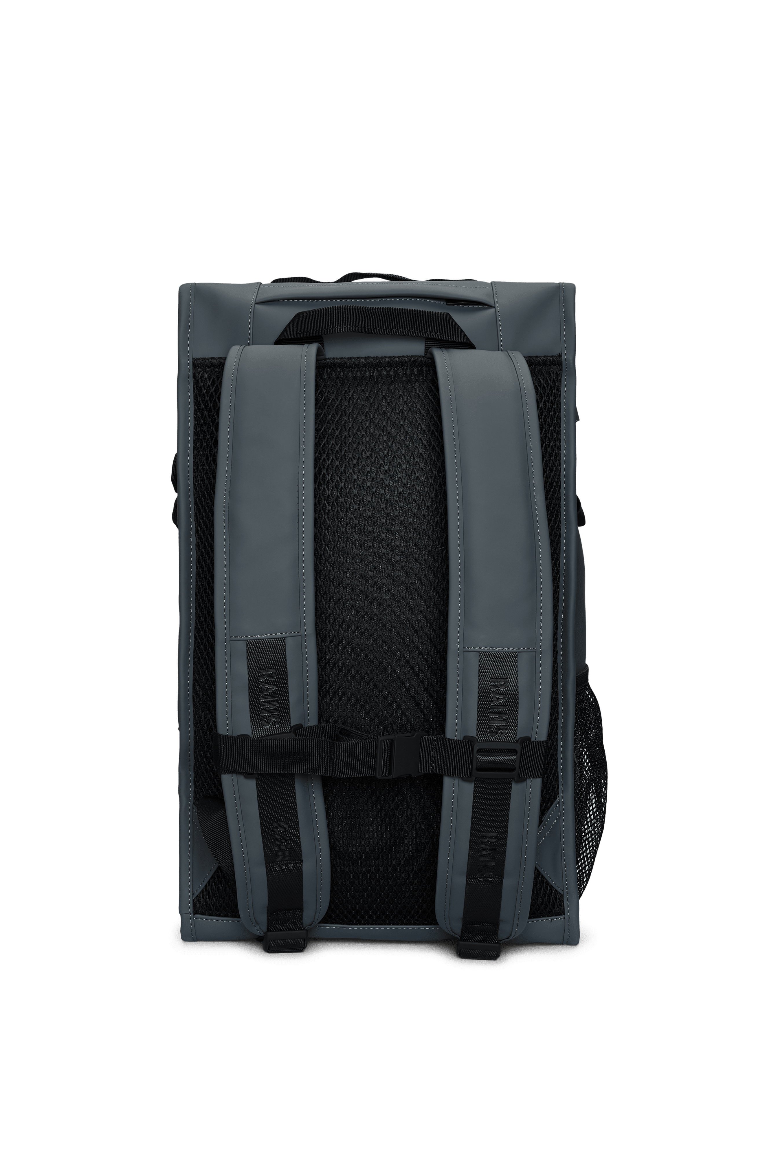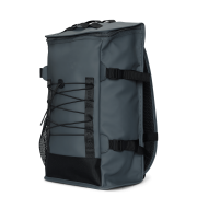 Der Rolltop Rucksack ist aus dem charakteristischen wasserdichten PU-Gewebe von Rains gefertigt, das robust und langlebig ist und sich angenehm anfühlt.