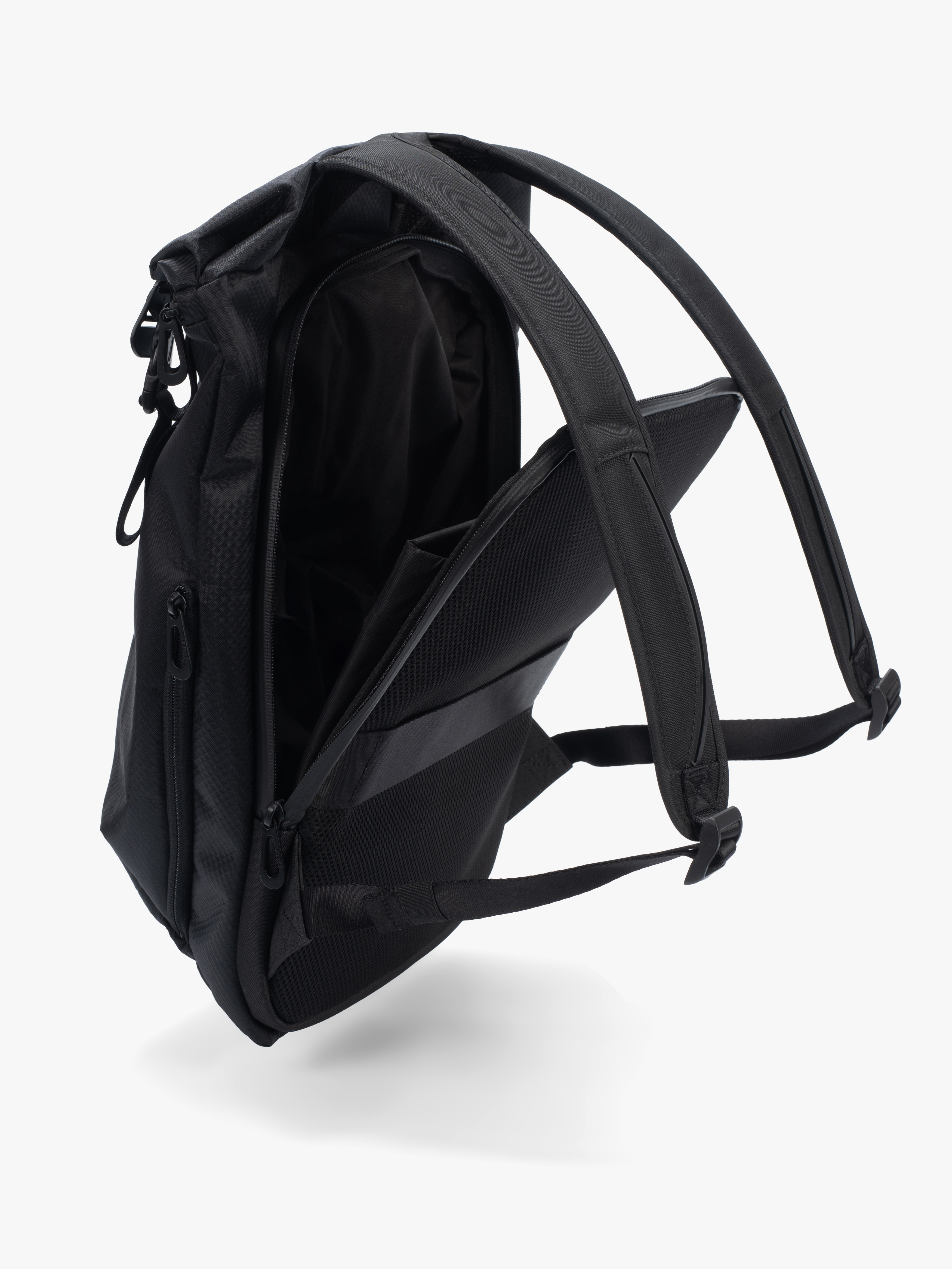 Der VENTA ist ein leichter Rucksack aus unserem neuen Satellite Black Nylon – einem technischen, strukturierten Gewebe mit einem markanten matten Glanz. Zwei Schnallenriemen an der Vorderseite öffnen ein geräumiges Fach, das einen einfachen Zugang zu den täglichen Gebrauchsgegenständen bietet.