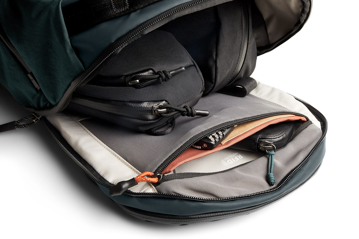 - Die obere Außentasche organisiert auf intelligente Weise das Wesentliche auf der Reise