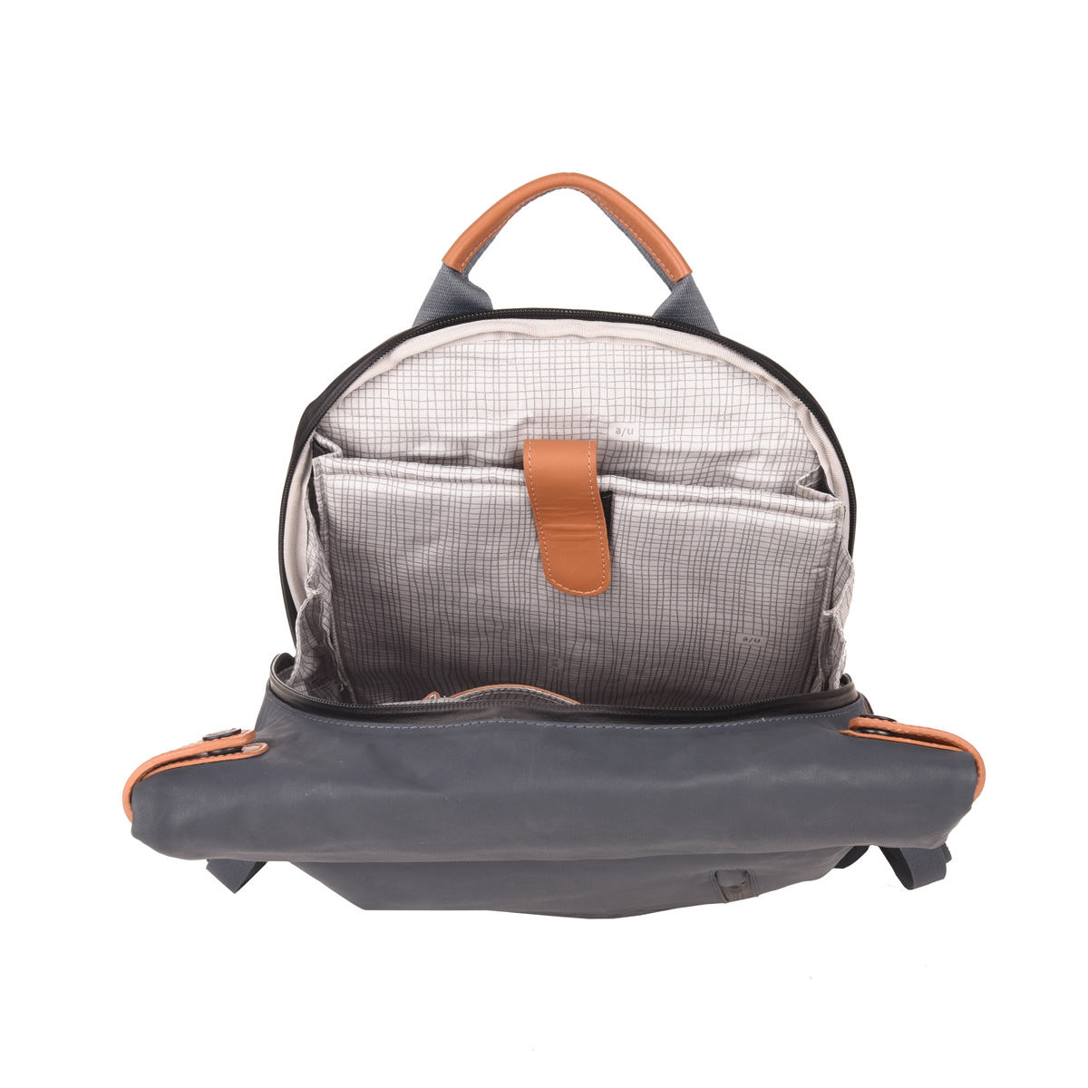 - Hauptfach mit Druckknöpfen und Rollen-/Wendeverschluss