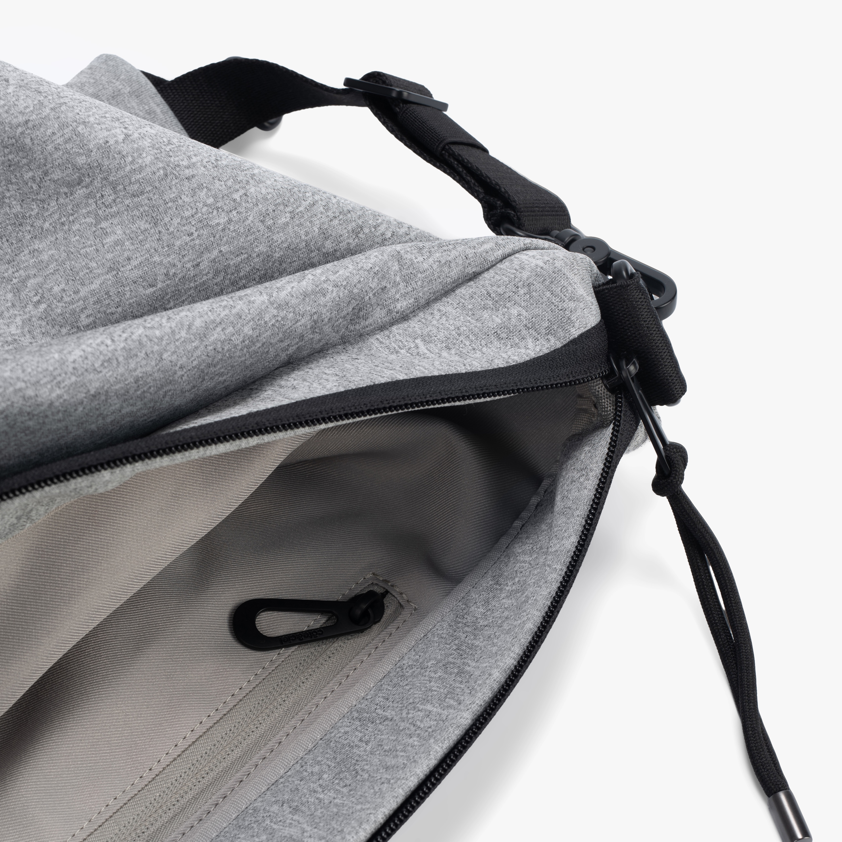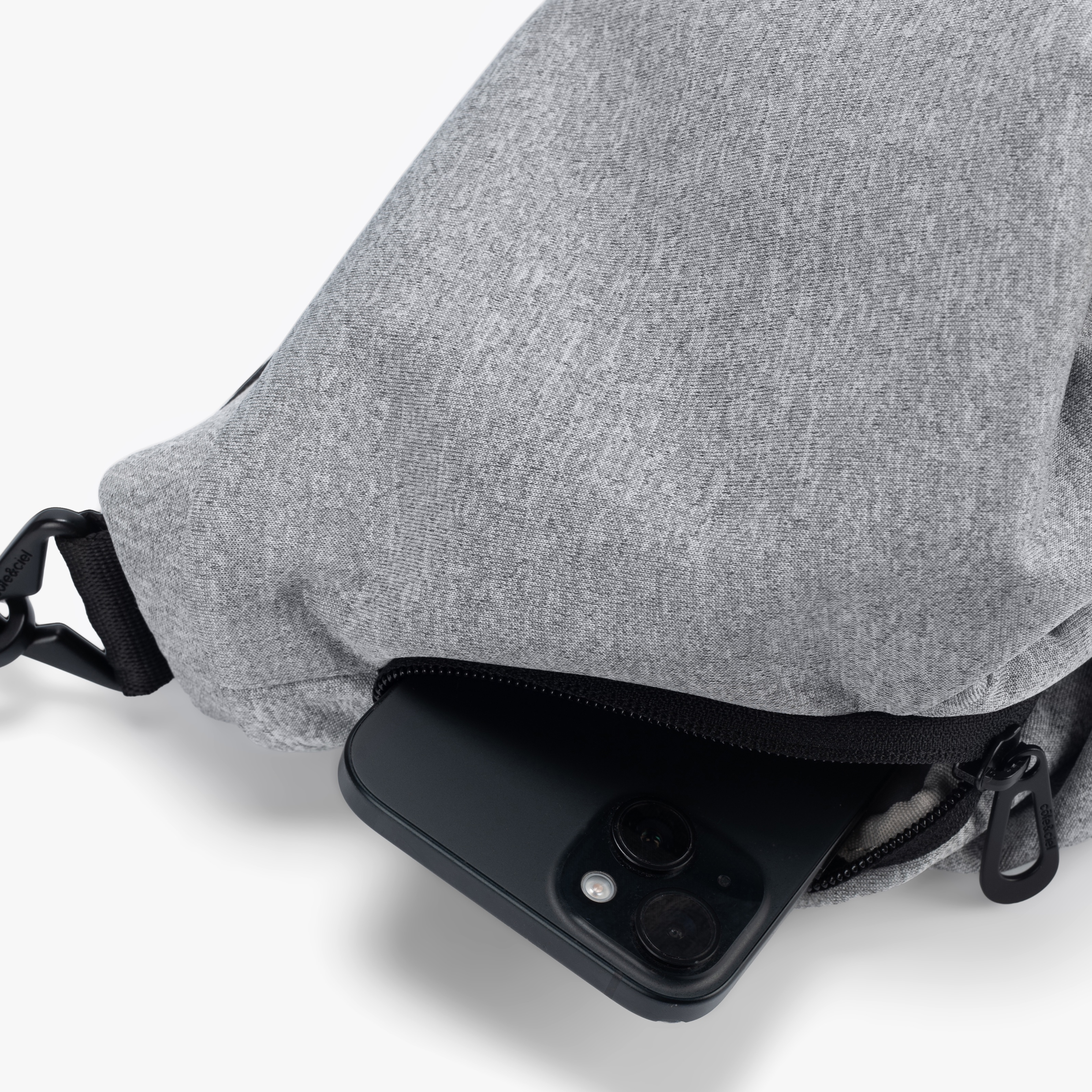 Das Hauptfach wird mit einem wasserabweisenden Reißverschluss gesichert, während ein außen angebrachter Lederanhänger das eingeprägte côte&ciel-Logo zeigt. Der abnehmbare, mit Reißverschluss versehene ADDA-Schulterriemen kann auch separat als schlichte Umhängetasche getragen werden.