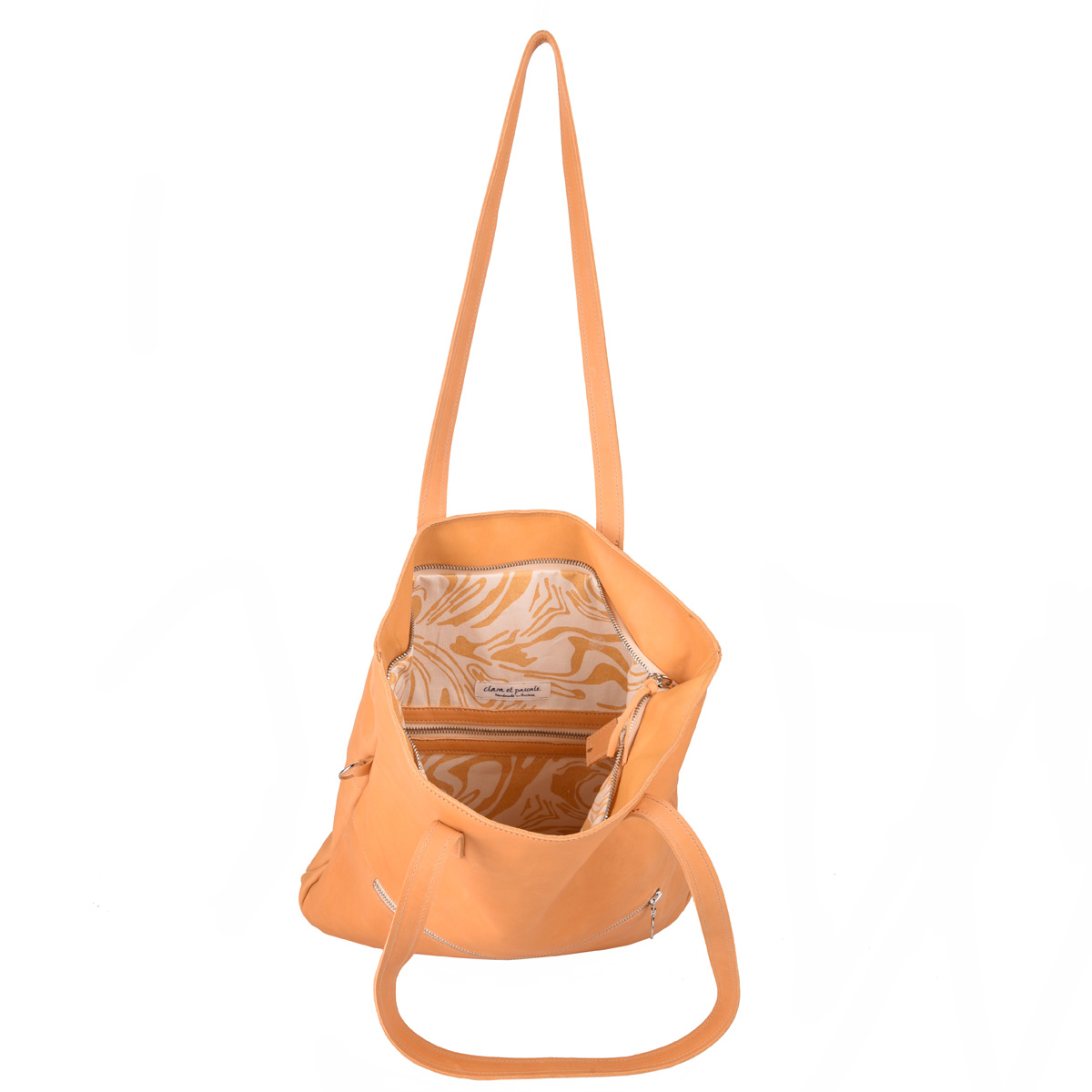 "Ava" ist eine geräumige und stilvolle Ledertasche von "clara et pascale". A4 Unterlagen und noch vieles mehr passen in diese Tasche. "Ava" kann entweder als Shopper, große oder geklappte Umhängetasche getragen werden. Handgemacht in Wien.