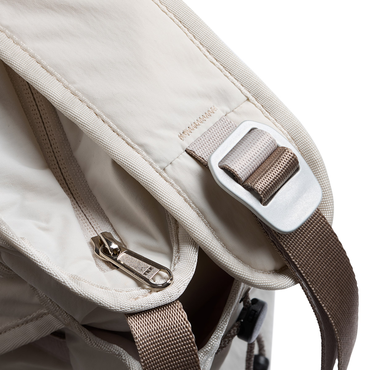 - Außenliegende zwei Kordelzugtaschen für kleine Gegenstände