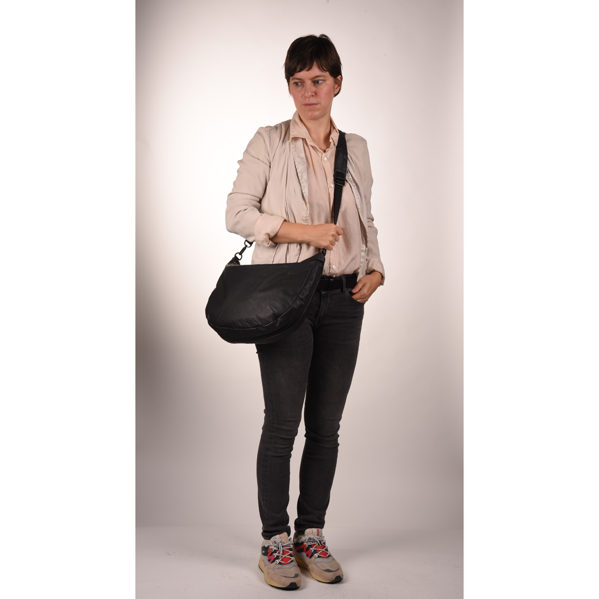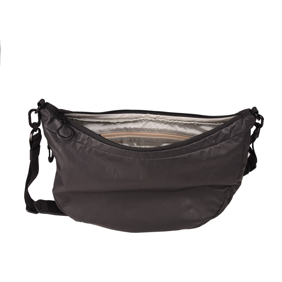Eine Halfmoon Bag, robust, regenfest und zeitlos designt. Die lässige Umhängetasche ist aus recyceltem Nylon gefertigt, das Koyoshi RE zu einem leichten und langlebigen Alltagshelden macht. Das geräumige Hauptfach bietet dir verschiedene, übersichtliche Einsteckmöglichkeiten, ein Schlüsselband und ein herausnehmbares Extra-Täschchen.