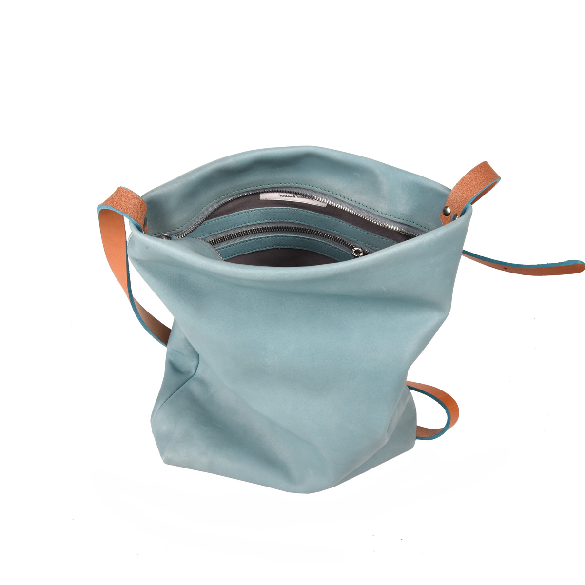 ein Reißverschlussfach mit Lederblende innen