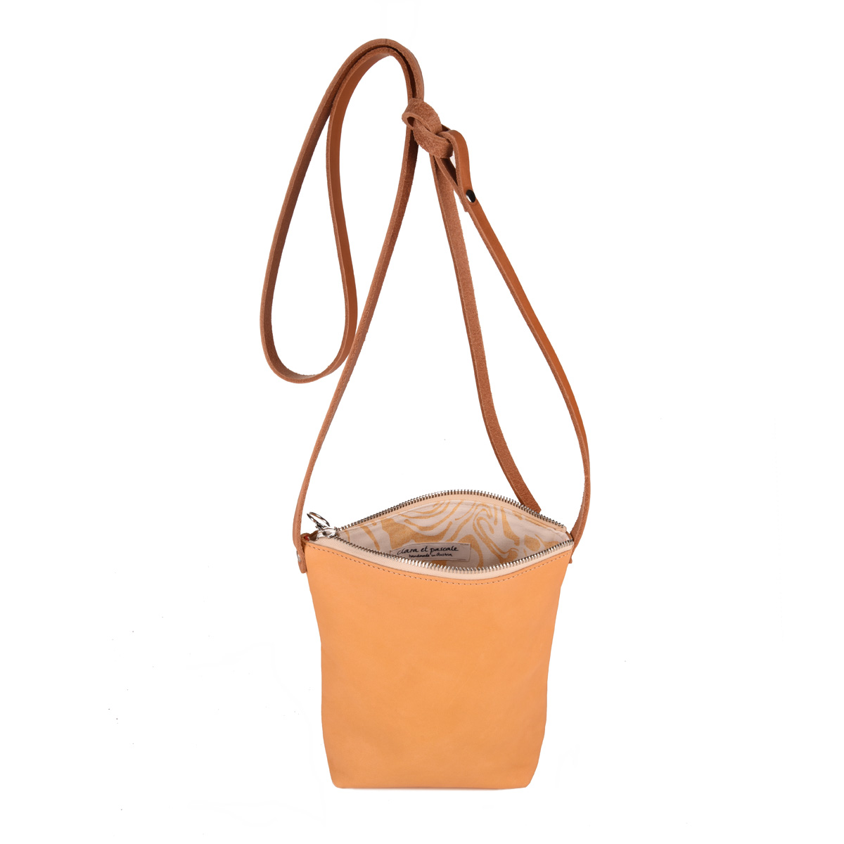 "Mini" ist eine kleine und stilvolle Ledertasche von "clara et pascale". Pflanzlich gegerbtes Leder kombiniert mit minimalistischem Design, handgemacht in Wien.