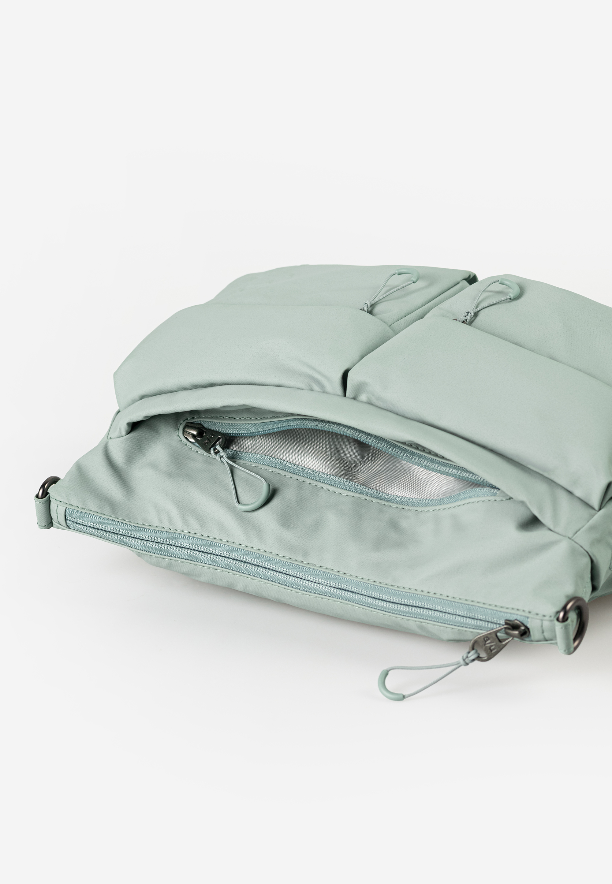 Ebenso wie die größere Variante Omono besticht Mogami durch übersichtlichen Stauraum in knautschiger Form. Die regenfeste Umhängetasche ist aus einem dicht gewebtem Riptop-Material aus recyceltem Nylon und Baumwolle gefertigt. Das puffige Design verleiht deinem Look einen lässigen, sportiven Touch. Das Hauptfach mit Reißverschluss bietet ausreichend Platz für deine täglichen Essentials, während äußere Reißverschlussfächer schnellen Zugriff auf wichtige Gegenstände ermöglichen. Dank des umlaufenden Reißverschlusses lässt sich das Taschenvolumen nach Bedarf erweitern, sodass du immer genügend Platz für alles hast, was du mitnehmen möchtest.