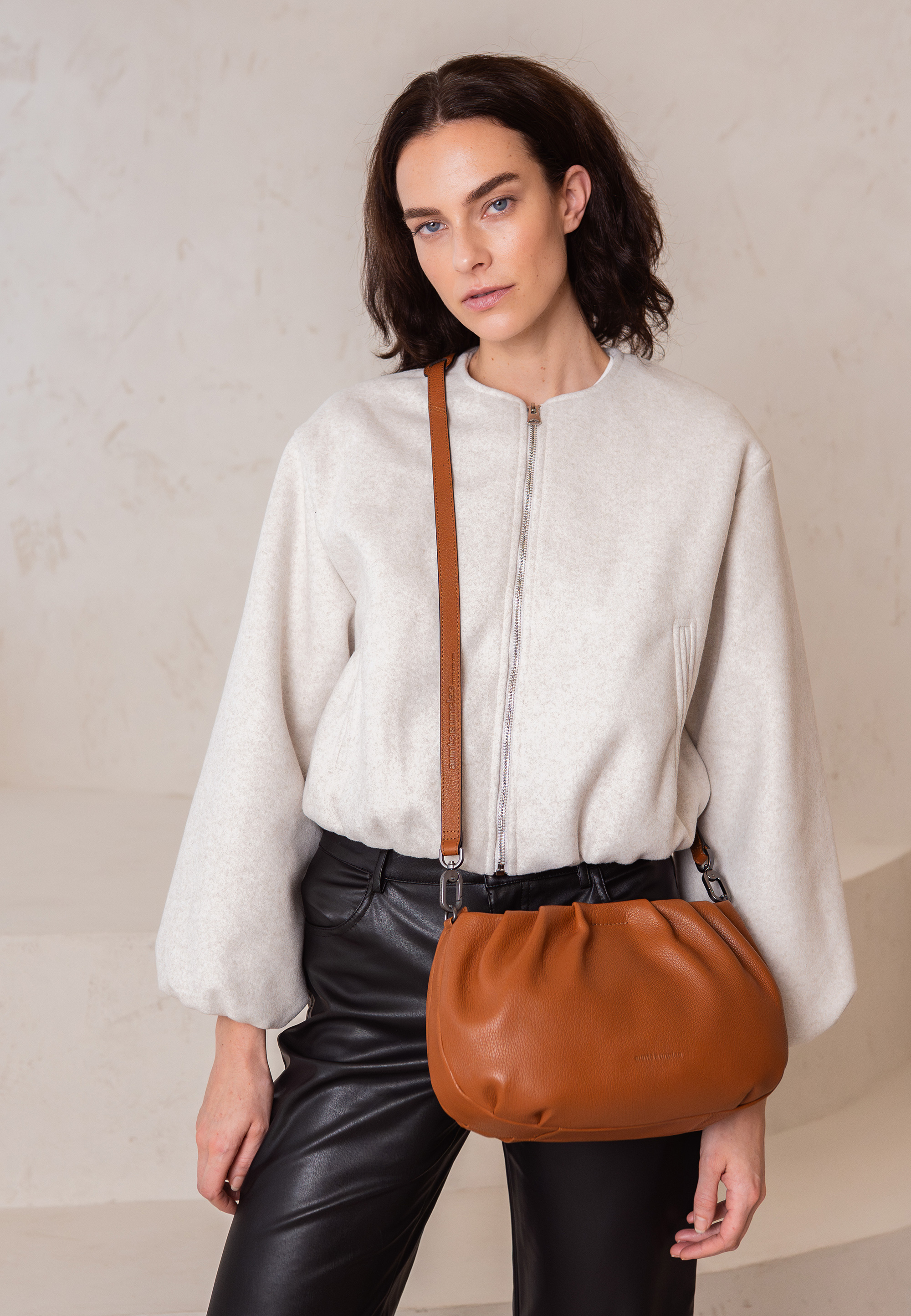 Pearl ist eine lässig elegante Schultertasche aus genarbtem Leder, das durch eine besonders weiche, knautschige Haptik zu überzeugen weiß.